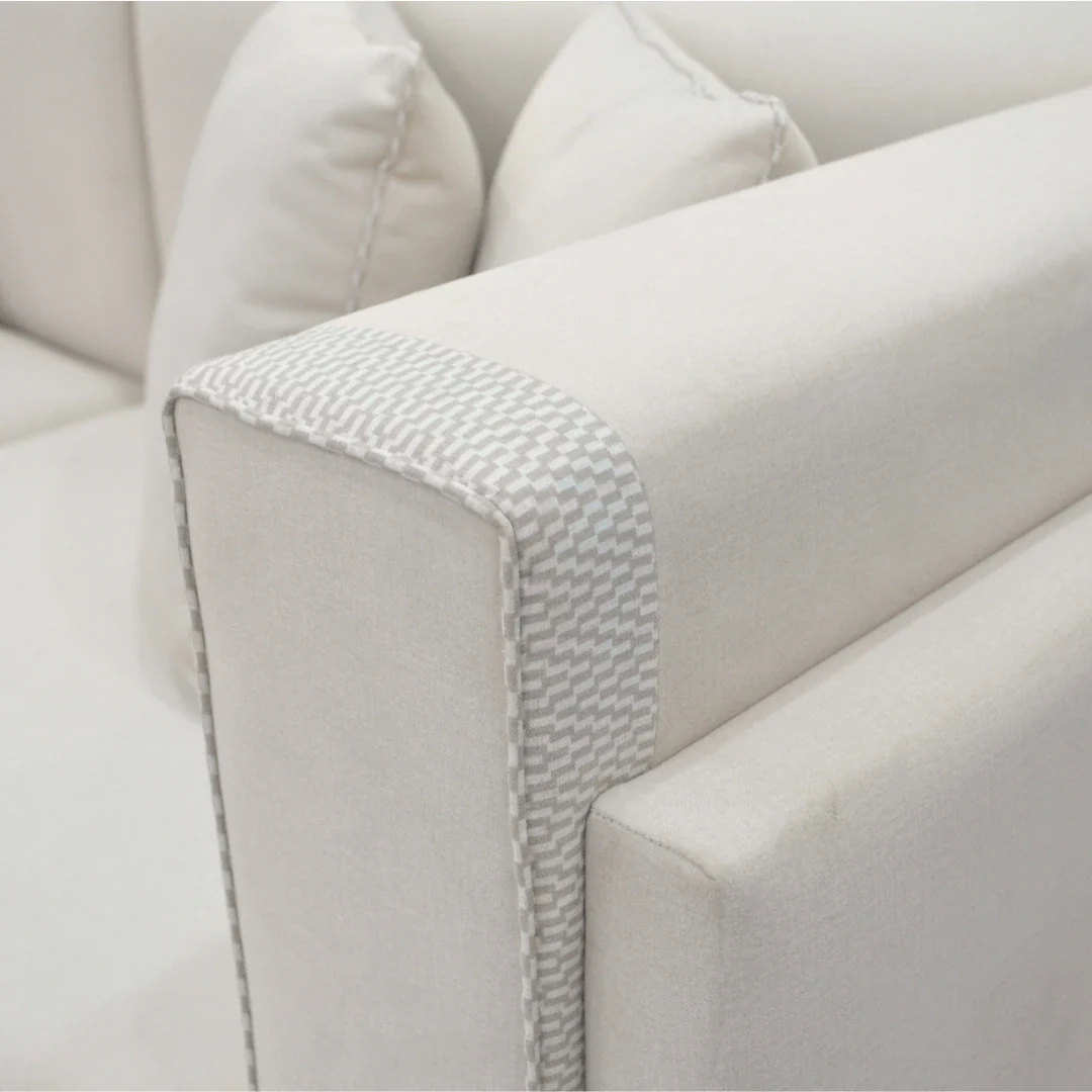 What truly sets the Vara teak wood sofa apart is the refined craftsmanship visible in its subtle patterned inlays on the armrests. These delicate details introduce texture and depth without overwhelming the minimalist aesthetics, allowing the sofa to remain sophisticated yet understated. Built to blend seamlessly into contemporary, Scandinavian, minimalist, or modern classic interiors, the Vara sofa is designed to integrate effortlessly while still standing out through its quality and presence over time.