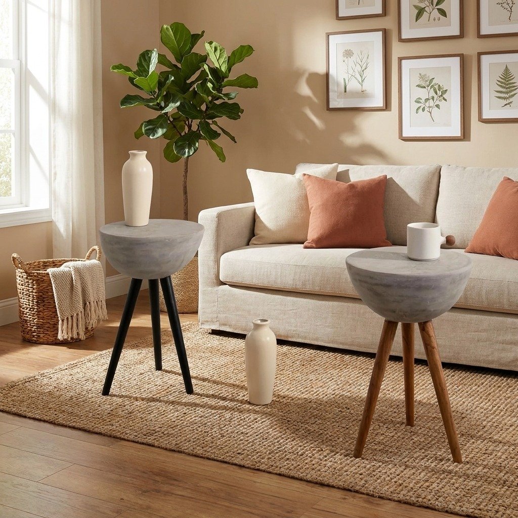 - Design: Compact yet sturdy, ideal for small corners or to pair with seating arrangements. PRITI Tripod Side Table