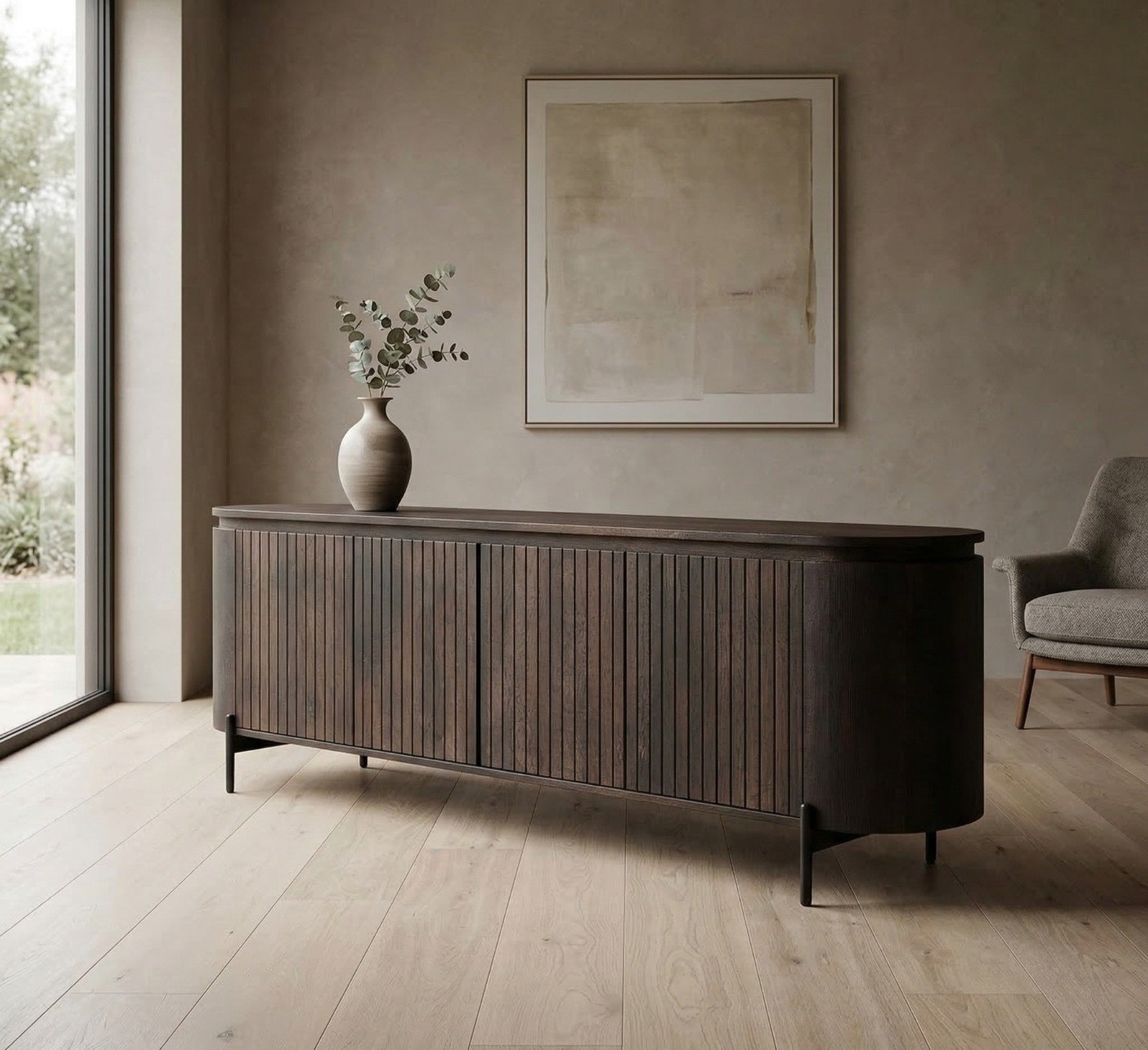 Versatility: The versatile design of the PRITI TV Unit Dark Brown Wood 210 cm (Solid Wood ) allows it to adapt to a range of decor styles and settings. Its dark brown wood finish and clean lines make it a perfect fit for contemporary and modern interiors, while its classic design ensures that it complements more traditional or transitional spaces as well. The TV unit can serve as a stylish centerpiece in your living room, providing both a functional surface for your TV and a sophisticated element to enhance your decor. Its adaptable design also makes it suitable for use in other areas of the home, such as a large media room or a spacious family room.