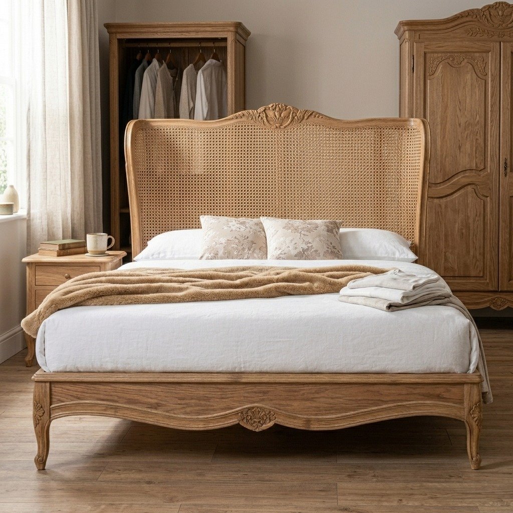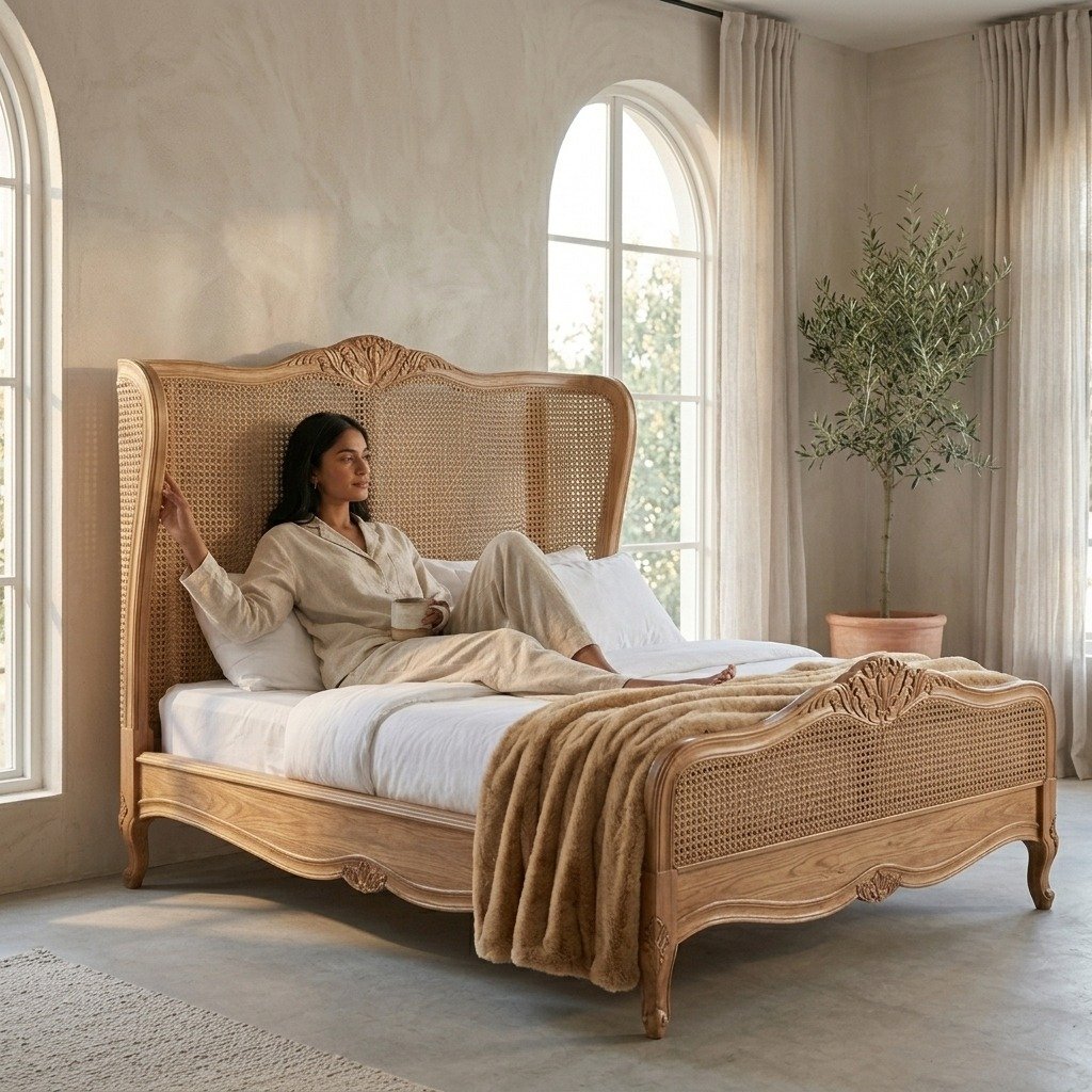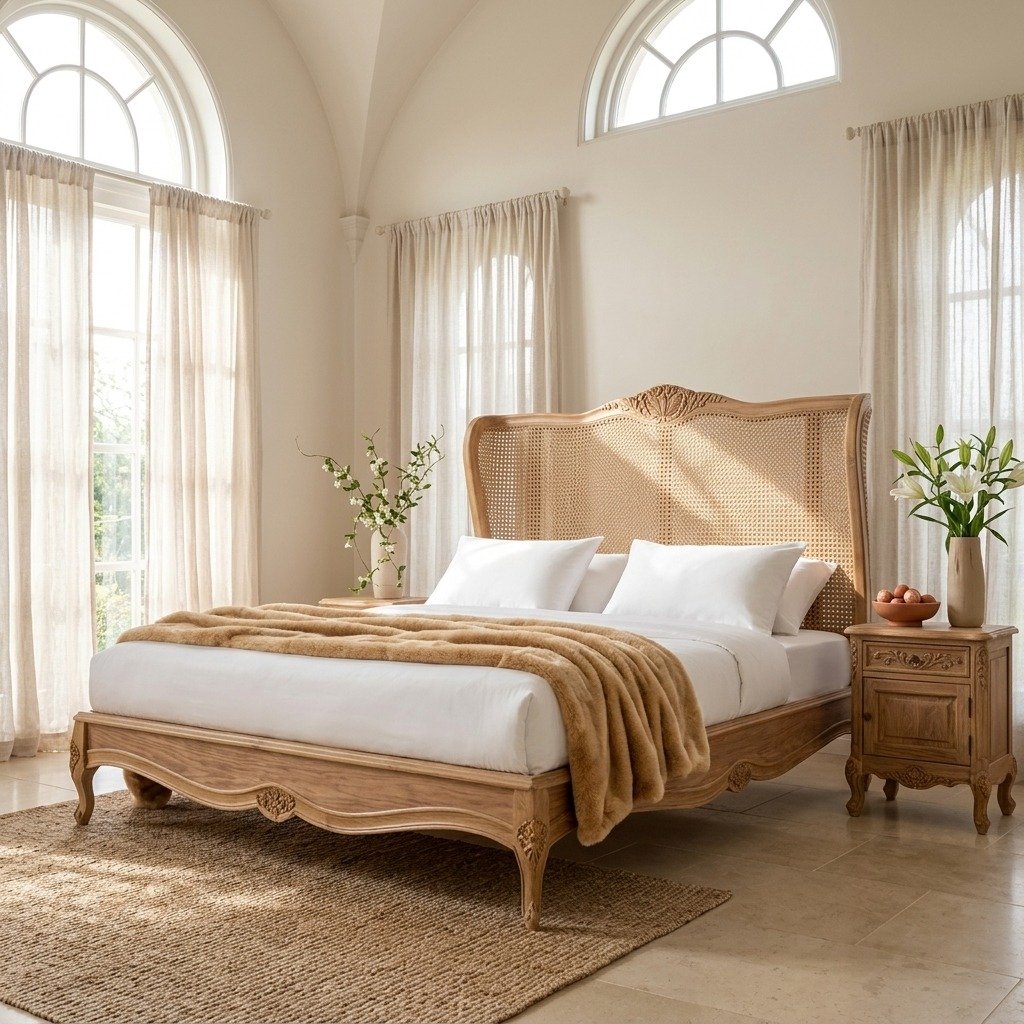 Ideal for those who appreciate classic European design, this bed brings a sense of sophistication and grandeur to any bedroom. Whether placed in a master suite or a guest room, the PRITI Versailles French Rattan Bed combines luxury, comfort, and style, creating a serene and regal sleeping experience.