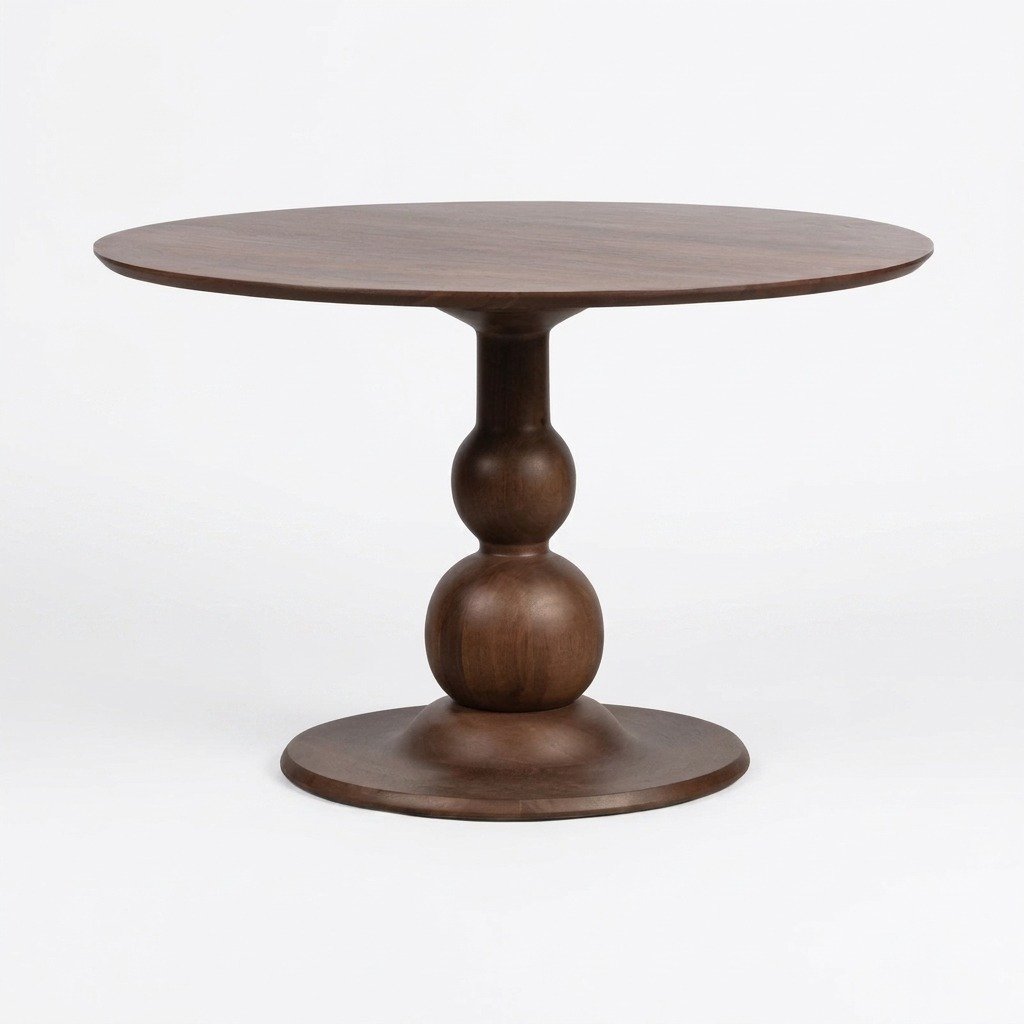 Designed for both practicality and aesthetics, this dining table features a sturdy construction and a playful vintage-inspired design, ensuring it remains both functional and stylish for years to come. Its round shape encourages conversation and adds a welcoming vibe to your home, while the rich wood grain enhances its timeless appeal.