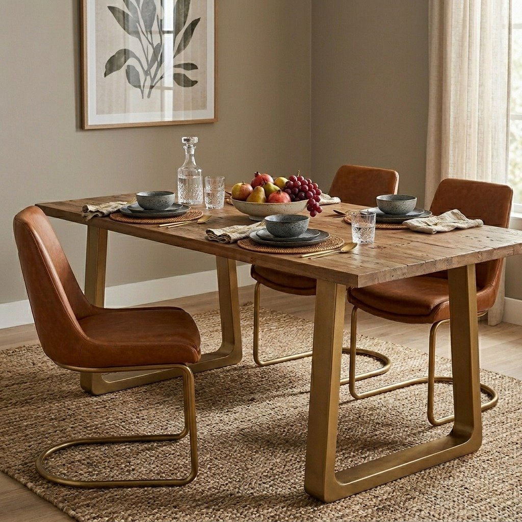 The durable wood-and-metal construction ensures longevity, while its Scandinavian-inspired design highlights the purity of natural materials, reflecting a commitment to timeless elegance. Whether dressed with simple everyday tableware or styled with elegant settings for special occasions, this table becomes a stunning focal point, encouraging guests to linger and enjoy.