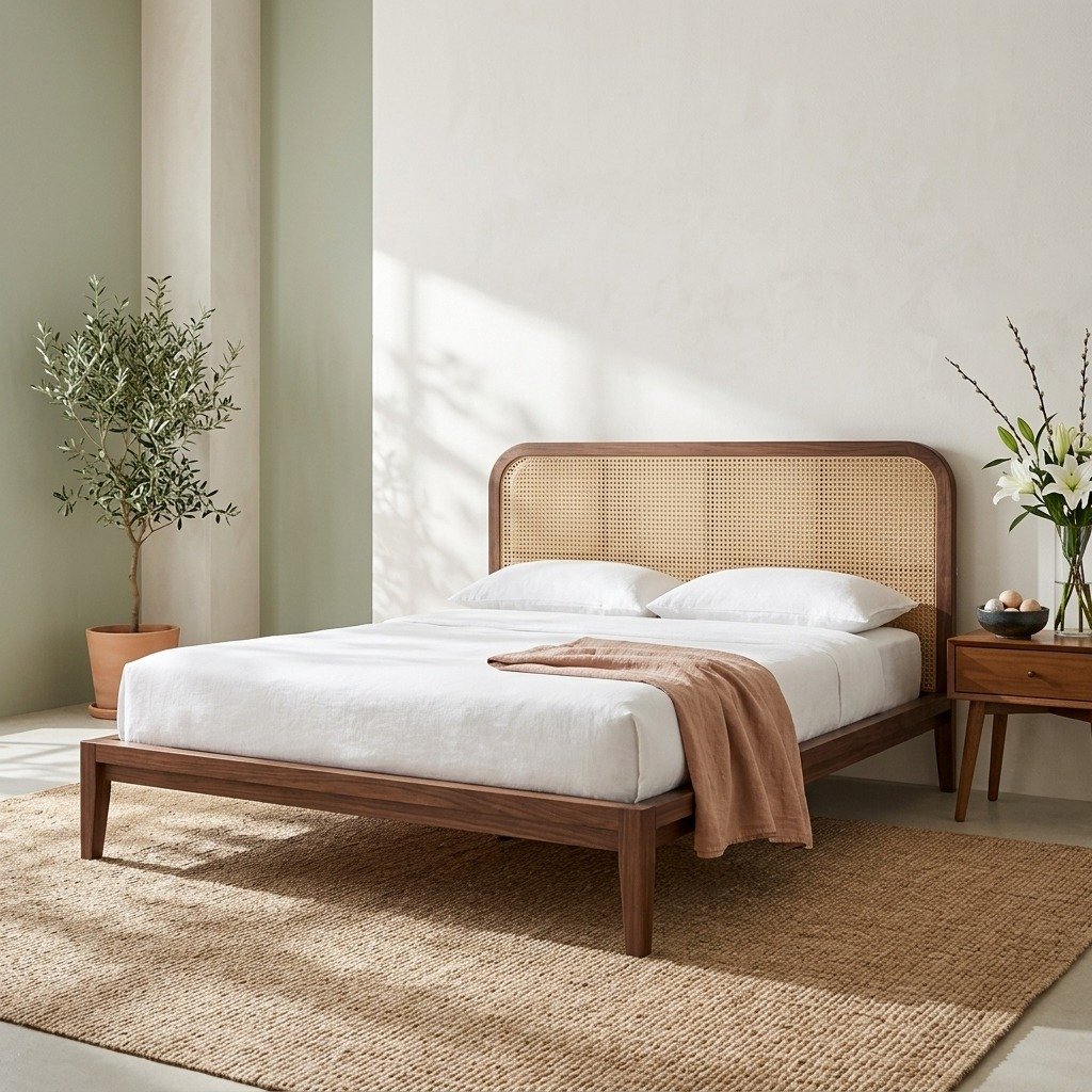Choose from a variety of finishes and textures, allowing you to customize the look of your bed to suit your personal taste. The headboard’s cane panel brings an airy, light feel to the design, while the solid wood frame ensures stability and long-lasting support.