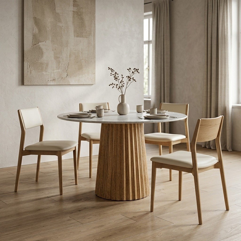 A key feature of the PRITI Dining Table is the elegant interplay of textures, with the unique incorporation of pleated fabrics that adds depth and visual intrigue to its design. This textured element complements the solid wood construction, creating a three-dimensional effect that enhances the table’s overall aesthetic appeal. The combination of natural wood’s warmth and refined design makes this table a stunning focal point in any dining space.