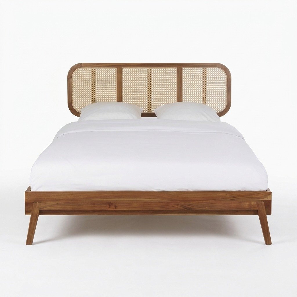 - Headboard: The rattan headboard is the centerpiece of the design, with its woven texture adding depth and interest. The headboard may feature a curved or rectangular shape, with the rattan framed by the solid wood to create a structured, polished appearance.