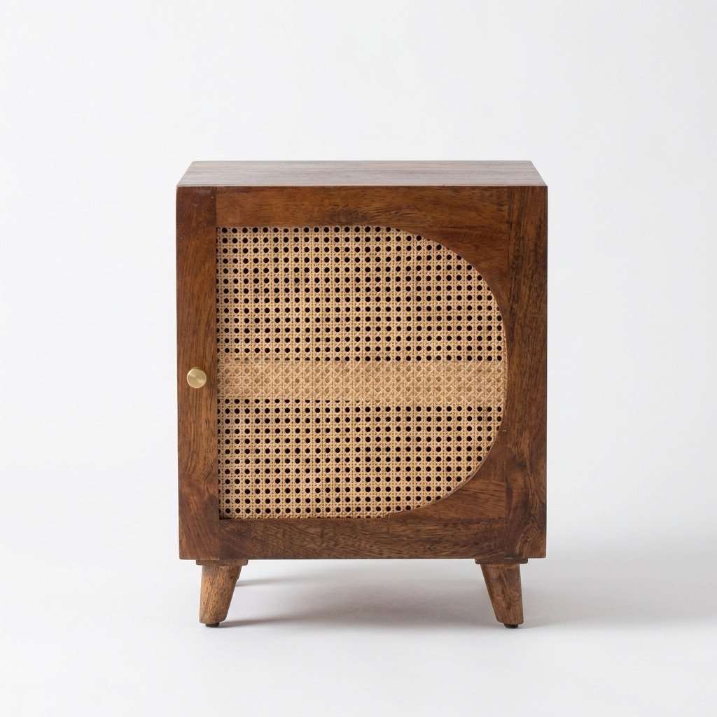 The PRITI Wooden Bedside Table (Wood with cane ) is a stylish and practical addition to any bedroom, designed to enhance your space with both elegance and functionality. Its combination of quality craftsmanship and timeless design makes it a versatile piece that complements various decor styles.