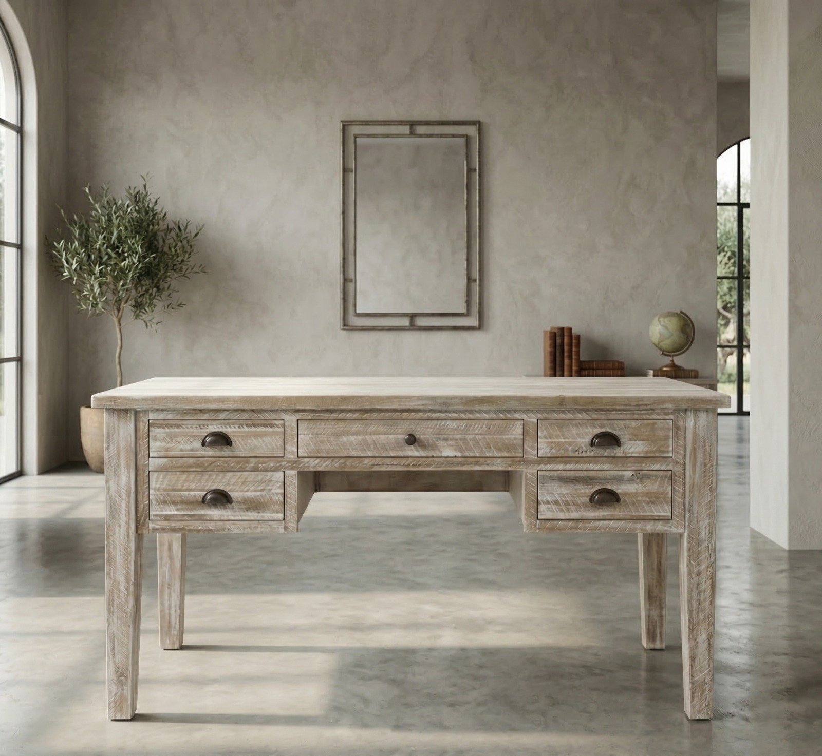 The Artisan’s Craft Collection emphasizes artisanal craftsmanship, and this desk is no exception. Each piece tells a story through its unique grain patterns and distressing, reflecting the skill and dedication of the artisans who create them. This attention to detail ensures that the PRITI Craft Desk is not just a functional piece of furniture but a statement of style and character.