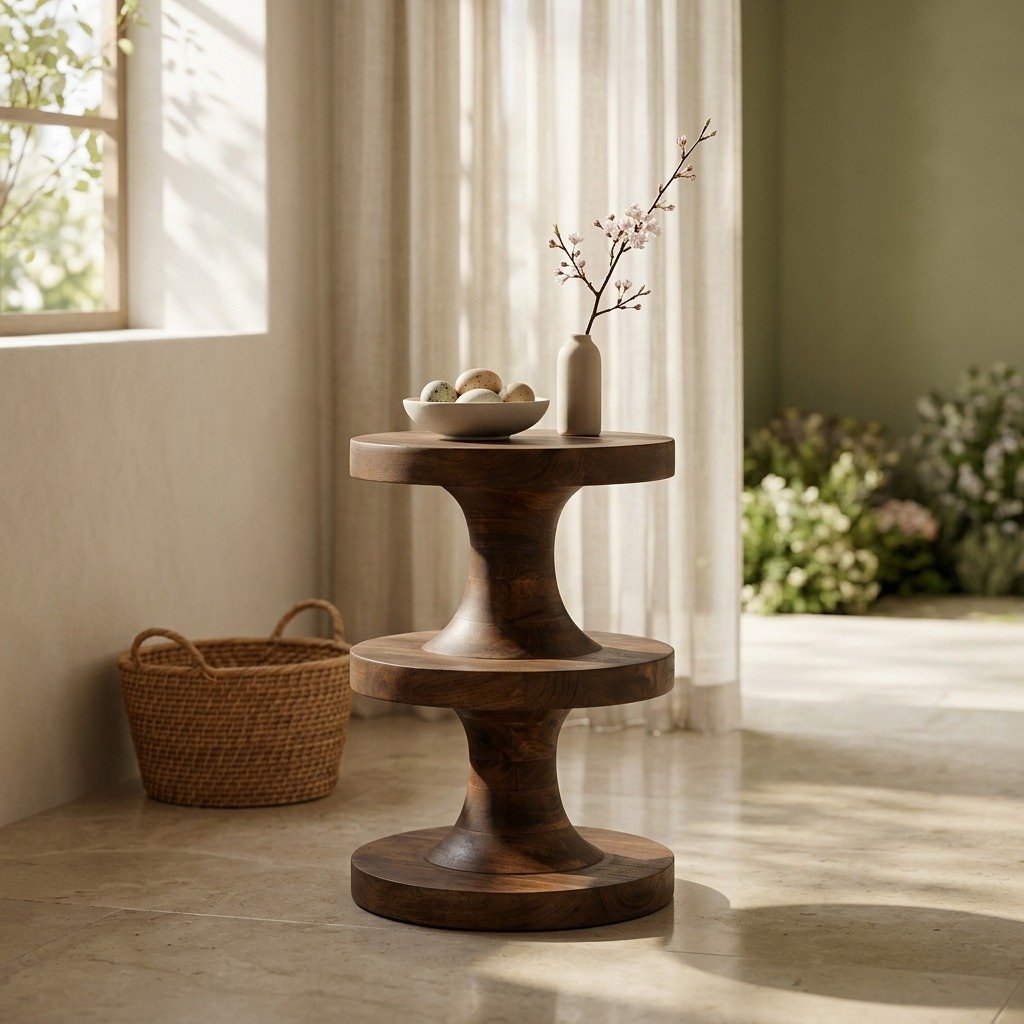 Measuring 45 cm in height and 30 cm in diameter, this footstool is the ideal size for resting your feet after a long day or serving as a practical extra seat for guests. Its sleek, minimalist design allows it to fit seamlessly into any interior style—from modern to rustic. The natural wood finish adds warmth and texture, making it a stylish accent piece that enhances your home’s aesthetic.
