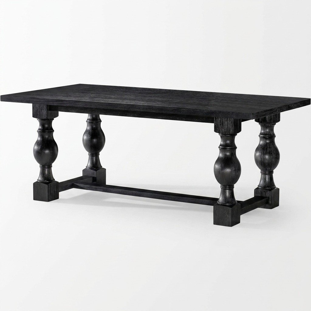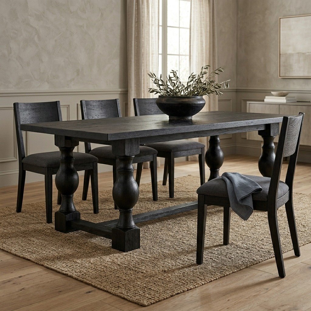 • In a contemporary space, the table’s minimalist design can be balanced with modern chairs or decorative elements to create a harmonious blend of old and new.PRITI Traditional Rectangle Wooden Dining Table (Solid Black Wood )