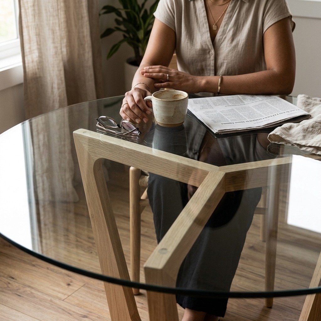 Introducing the PRITI Round Arc Dining Table | Natural in Natural—a masterpiece that blends organic beauty with modern design. This table is crafted to bring warmth and elegance to your dining space, making it an inviting centerpiece for both everyday meals and special gatherings.