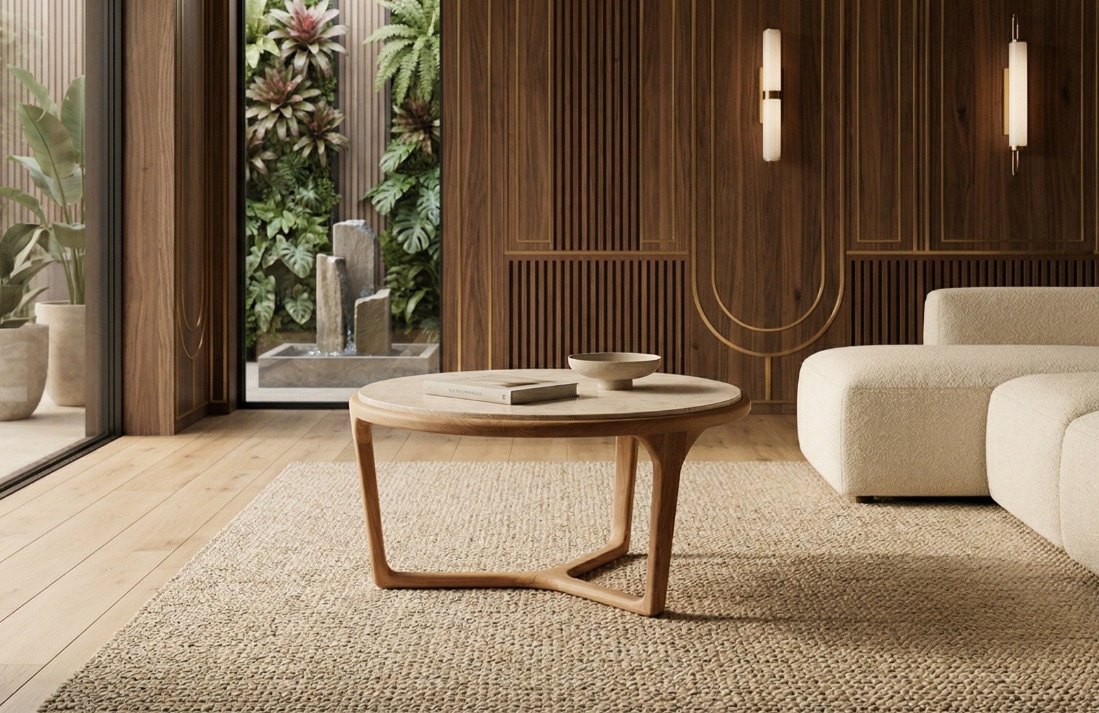 Dimensions: The table’s round shape and substantial size provide a generous surface area, making it an ideal choice for a coffee table. The dimensions are designed to fit well in various living spaces, providing both practicality and visual appeal.