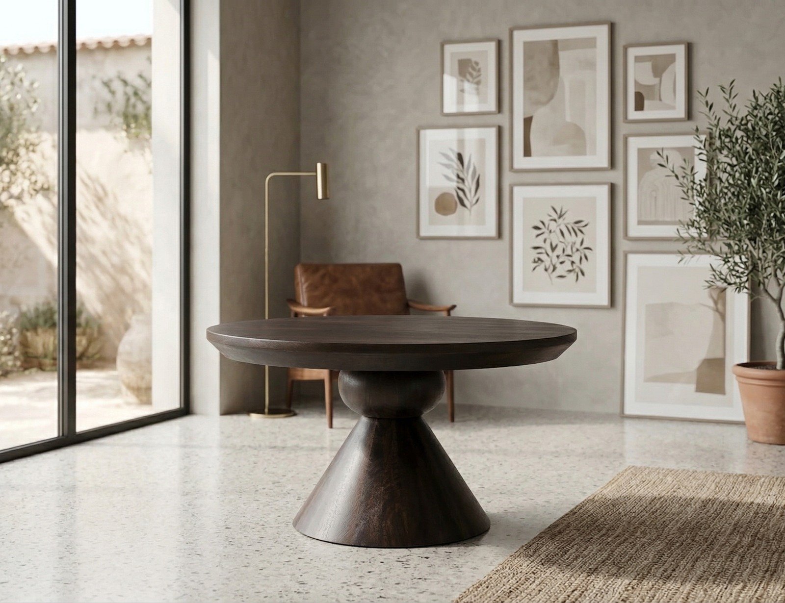 The warm tones of the mango wood add depth and warmth to your interior, creating an inviting atmosphere. Its versatile design allows it to complement various decor styles, from modern minimalism to rustic elegance. Round Brown Solid Wood Coffee Table