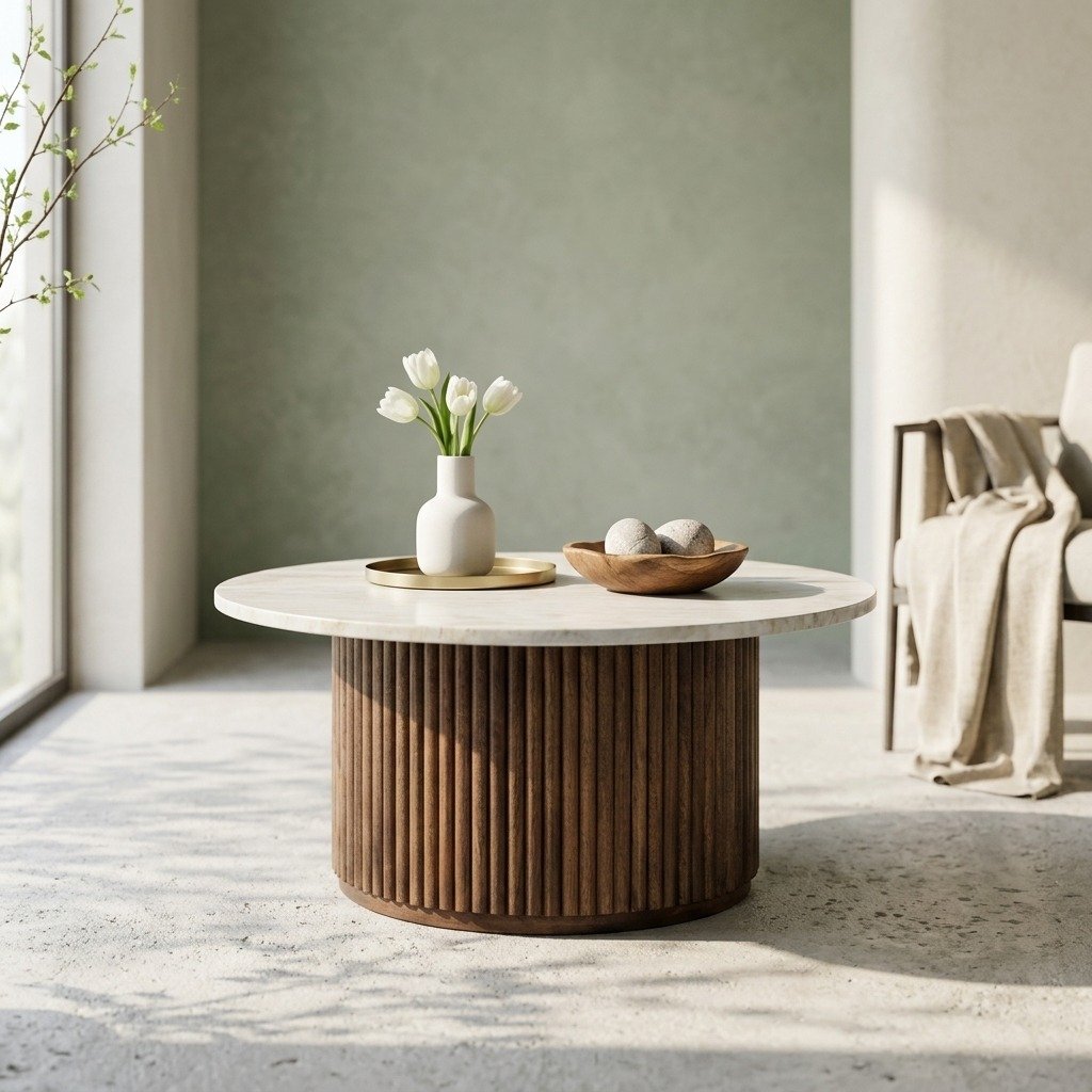 PRITI Round Marble and Wood Coffee Table