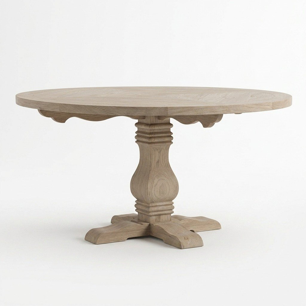 Bring timeless charm and artisanal beauty into your dining space with this hand-crafted round pedestal dining table made from solid white cedar wood. Designed to be both functional and visually striking, this table showcases a rustic finish that highlights the natural grain patterns, knots, and warm character of white cedar. Every piece is individually crafted by skilled artisans, ensuring that no two tables are ever exactly alike.