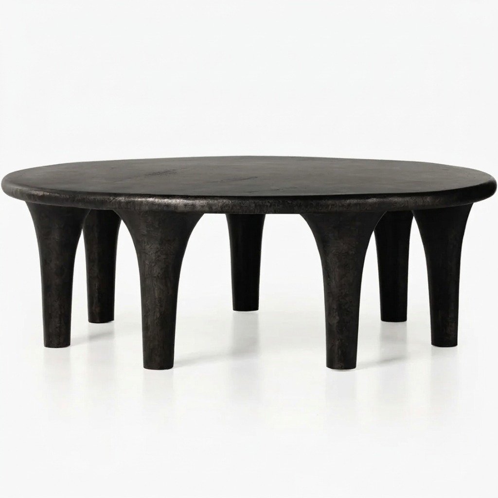 Elevate your living space with the Round Wooden Coffee Table in Raw BlackRound Wooden Coffee Table in Raw Black, crafted from premium solid wood to combine durability, style, and functionality. Its sleek round design and striking raw black finish make it a modern centerpiece that enhances any contemporary or minimalist interior.