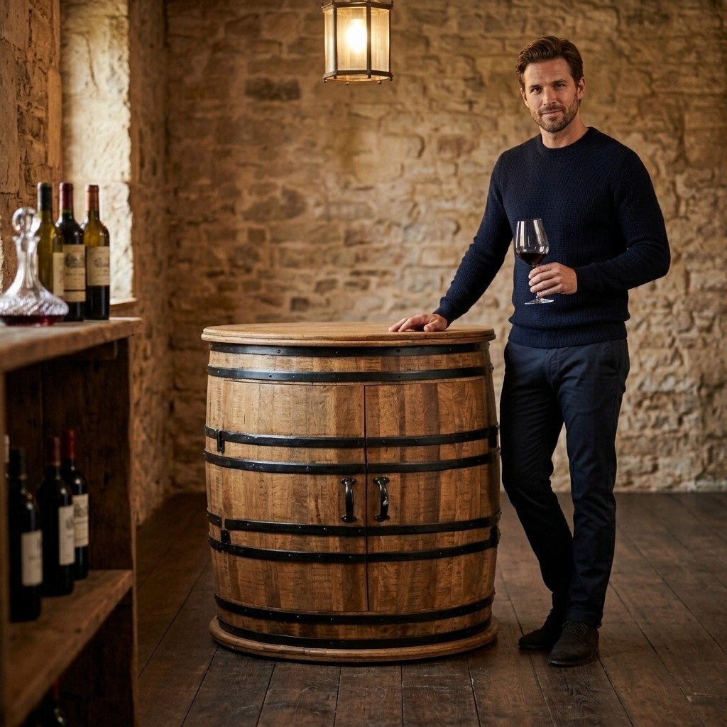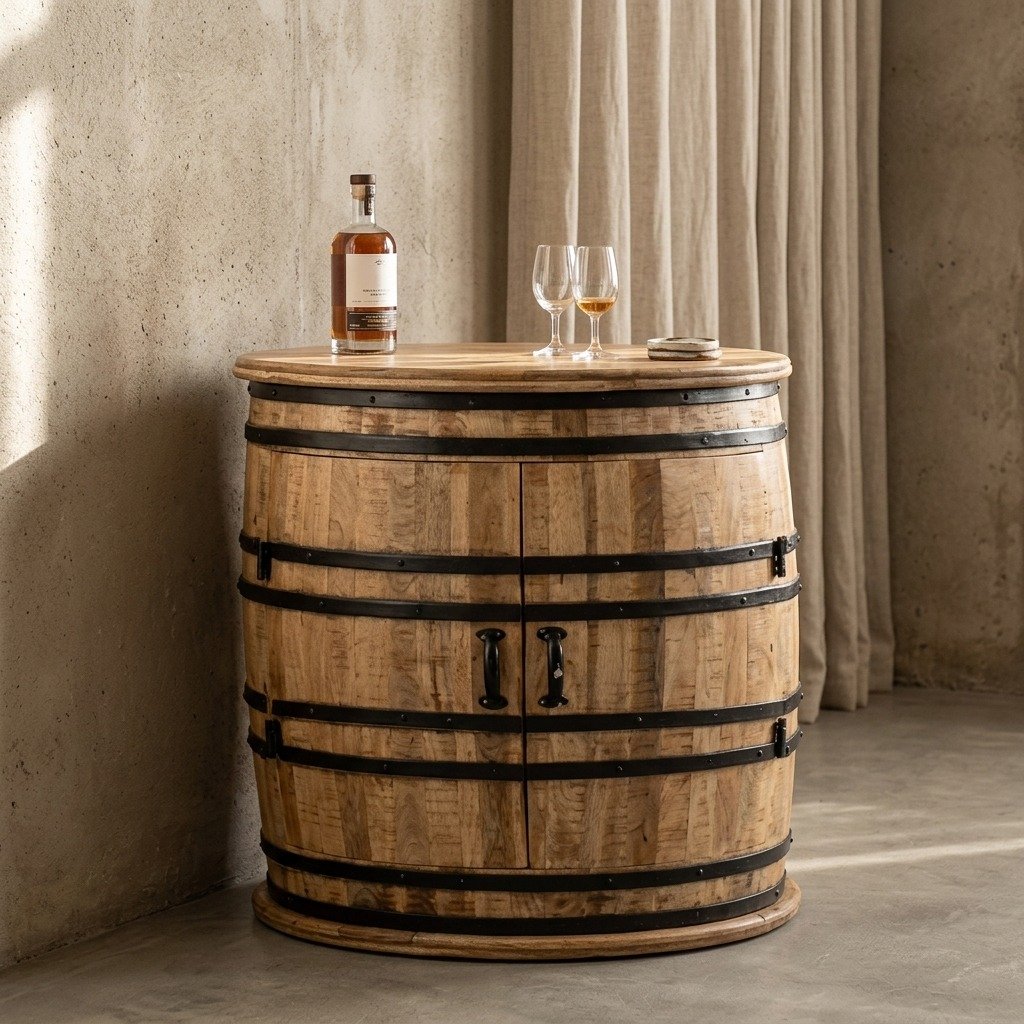 Elevate your home bar or entertaining space with the Savannah Barrel Cocktail Cabinet solid wood with metal, a perfect blend of rustic charm, modern durability, and functionality. Crafted from premium solid wood and reinforced with a sturdy metal frame, this cocktail cabinet offers a long-lasting and stylish solution for storing your beverages, glassware, and bar essentials. Its barrel-inspired design adds a unique focal point to any interior, making it ideal for contemporary, industrial, or rustic décor styles.