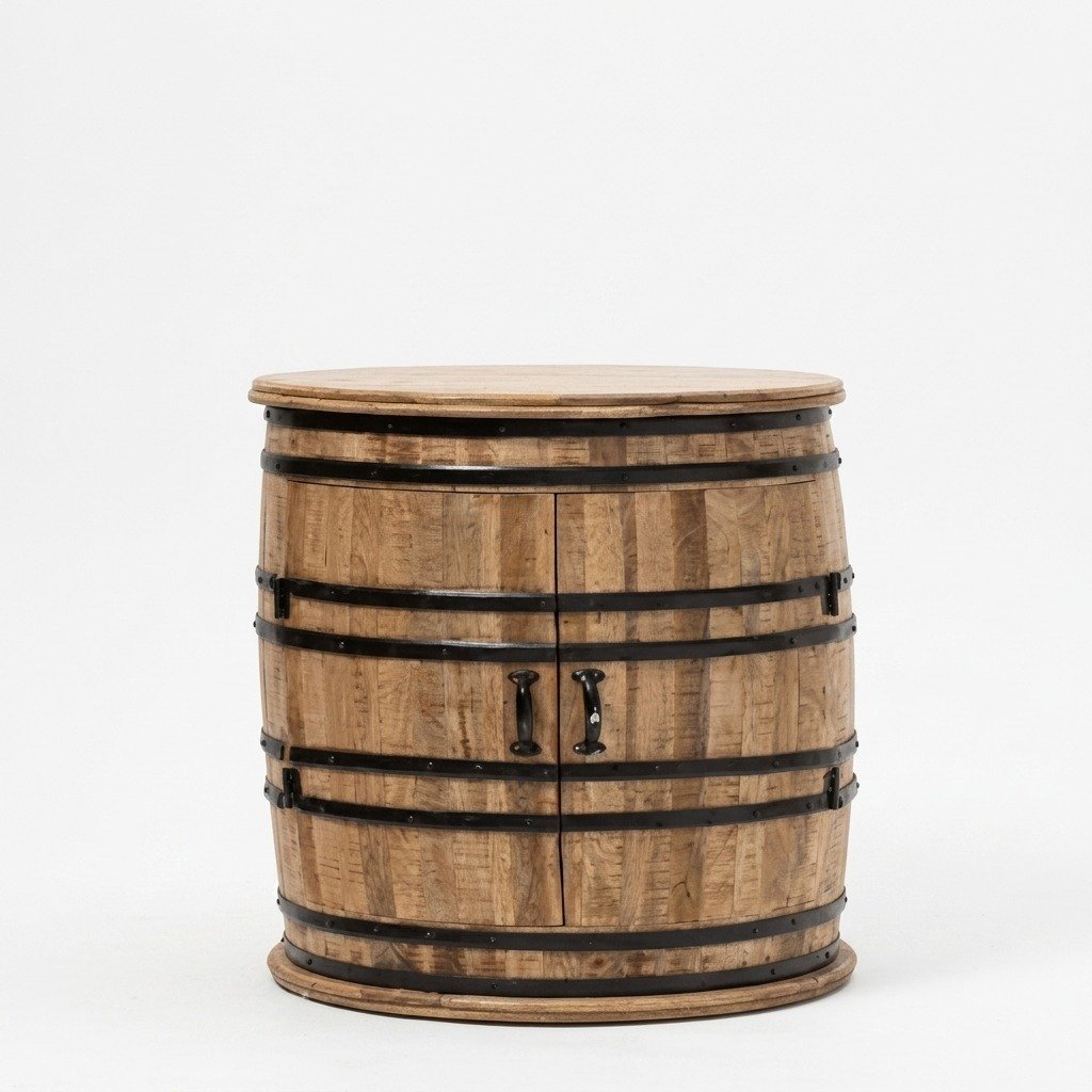 Savannah Barrel Cocktail Cabinet solid wood with metal