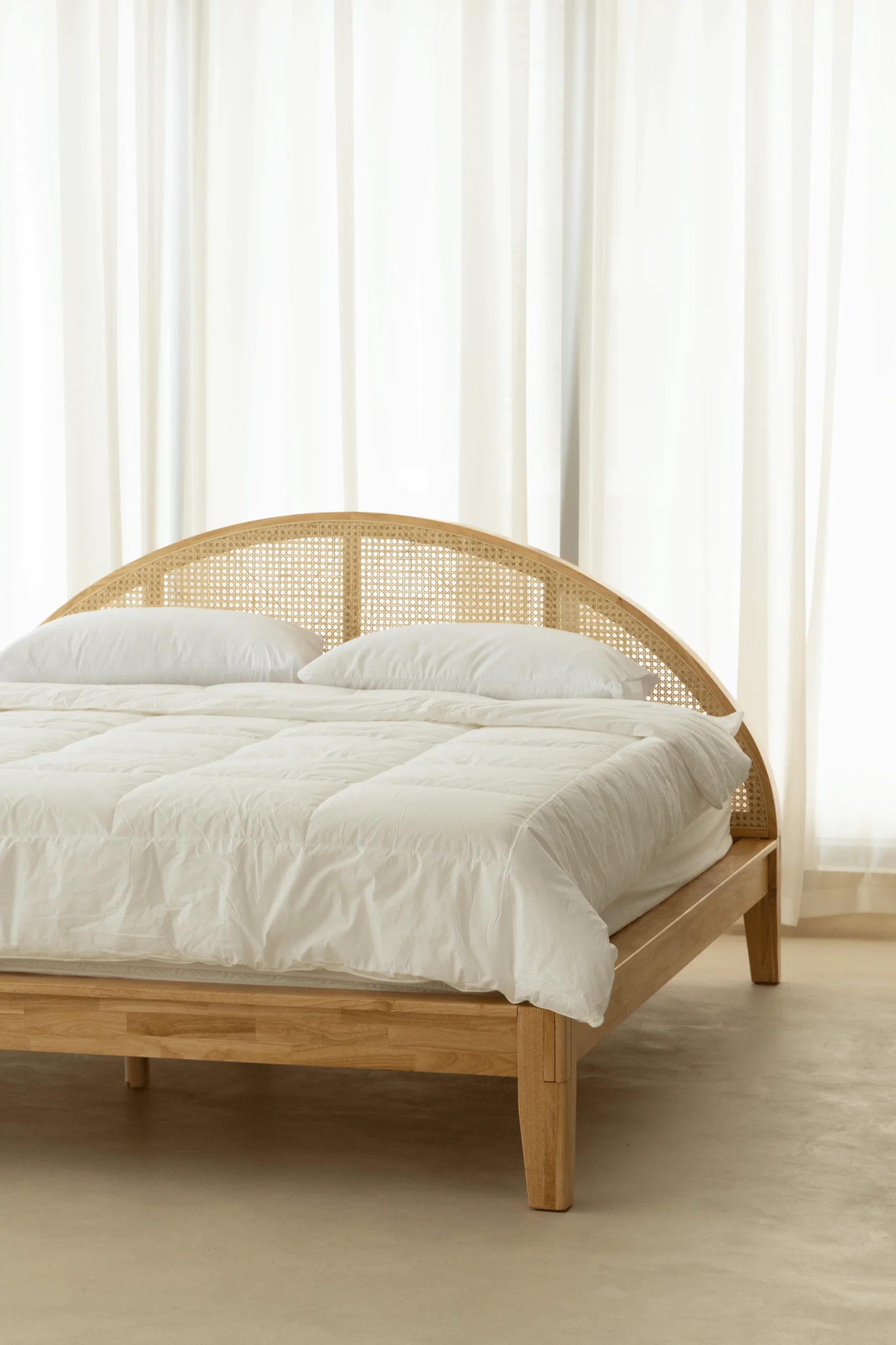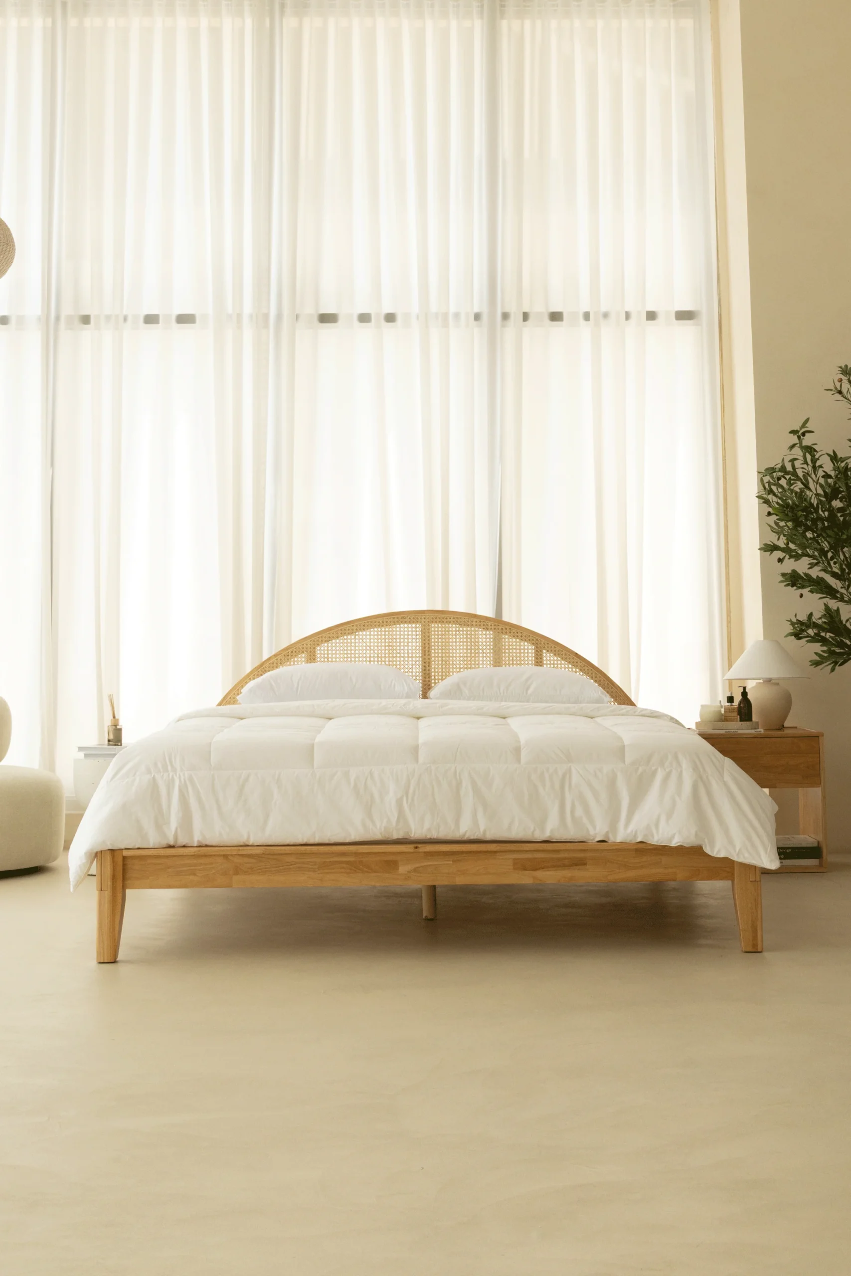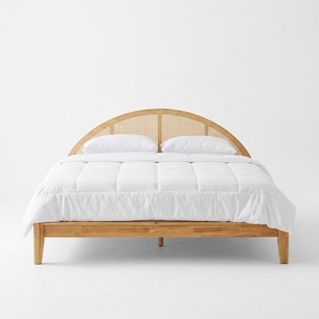 Transform your bedroom into a sanctuary of calm with this beautifully designed Soft Arch Rattan Headboard, framed in warm, light-toned solid wood that radiates natural serenity. The gentle curve of the headboard creates a welcoming and harmonious silhouette, while the handwoven rattan adds depth, organic warmth, and an inviting sense of texture. This thoughtful combination of materials brings a light, airy spirit to your space, making the room feel more open, peaceful, and connected to nature. Soft Arch Rattan Headboard
