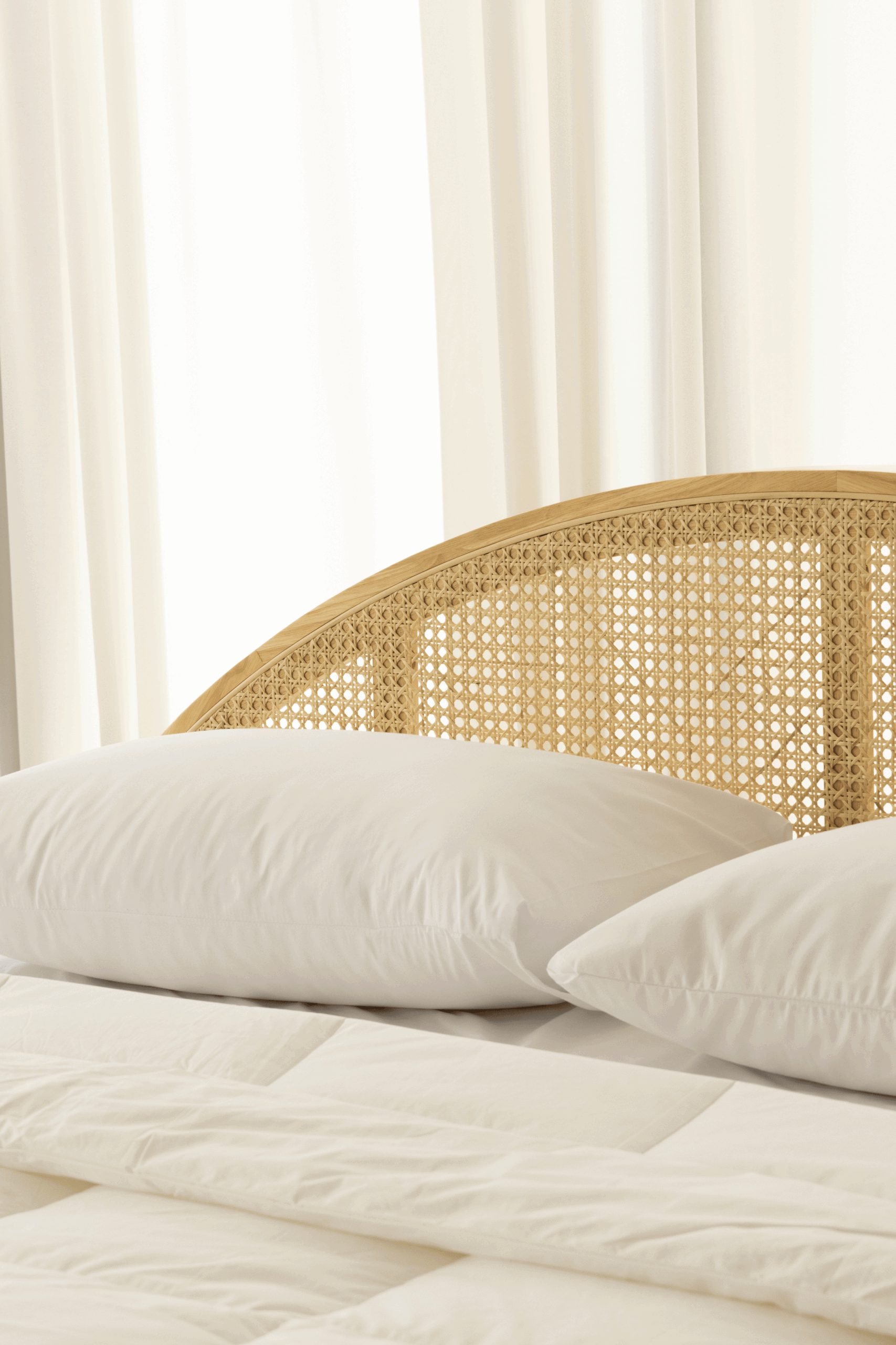 Crafted using meticulous Japanese joinery techniques, the frame is not only visually seamless but also exceptionally strong and durable. Every joint, curve, and surface is finished with precision, reflecting the balance of form and function that defines minimalist design. The natural wood grain enhances the headboard’s soothing aesthetic, while the rattan weave introduces subtle shadows and visual softness—perfect for creating a cozy, restful atmosphere.