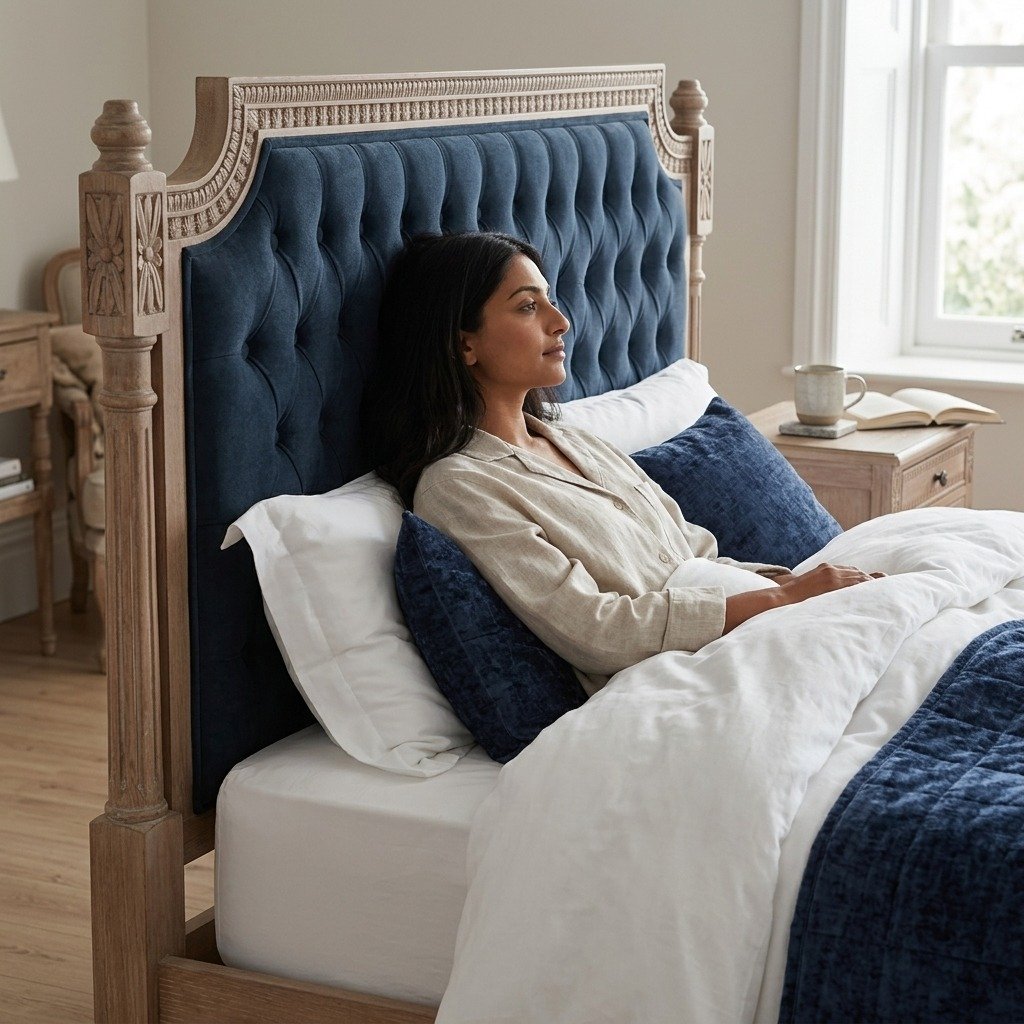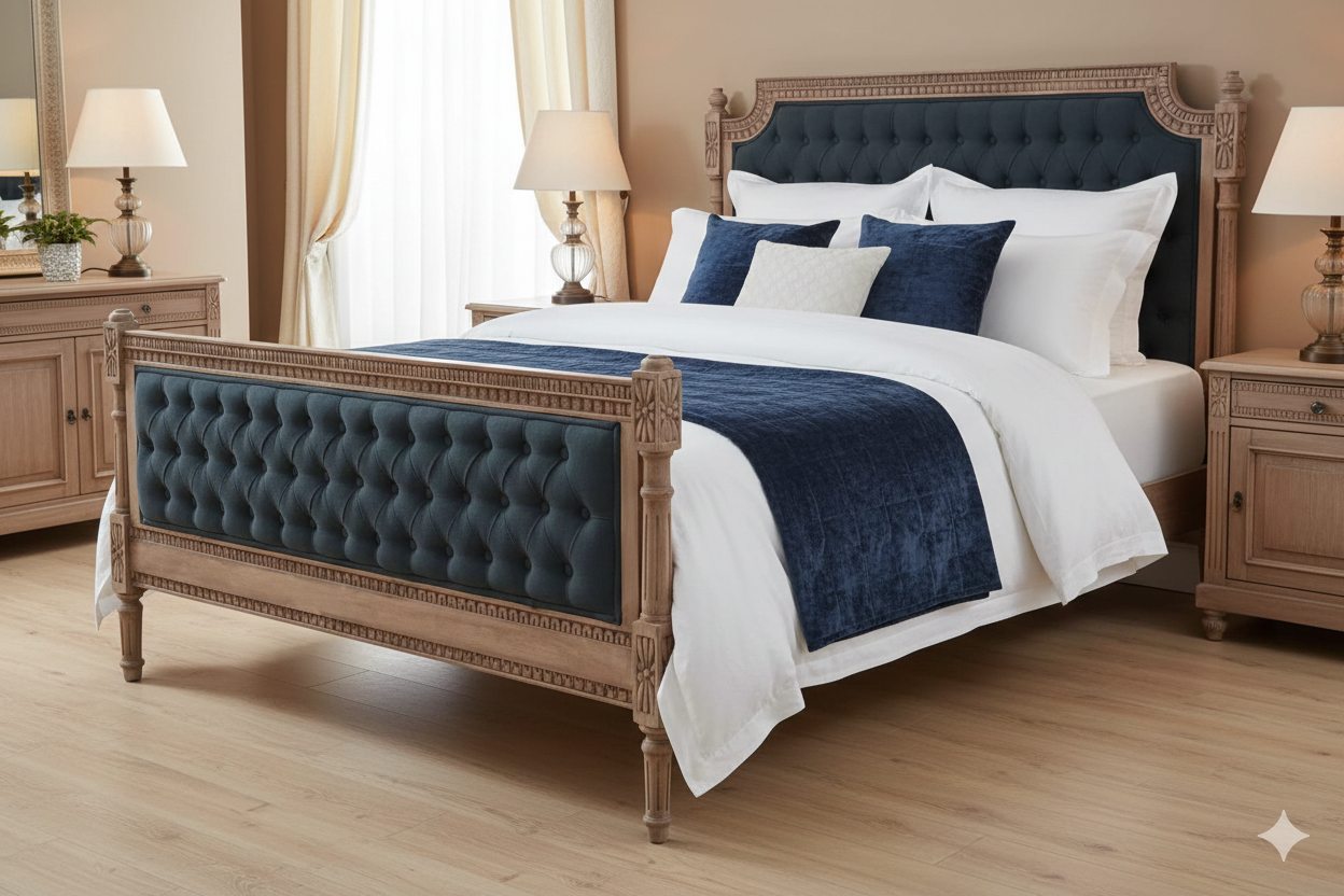 Solid Mango Wood Grey Deep Button Bedroom Bed – PRITI