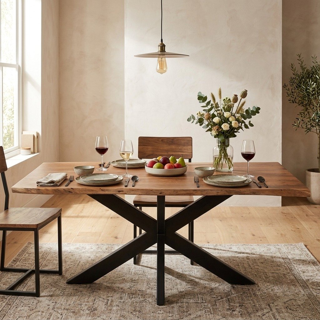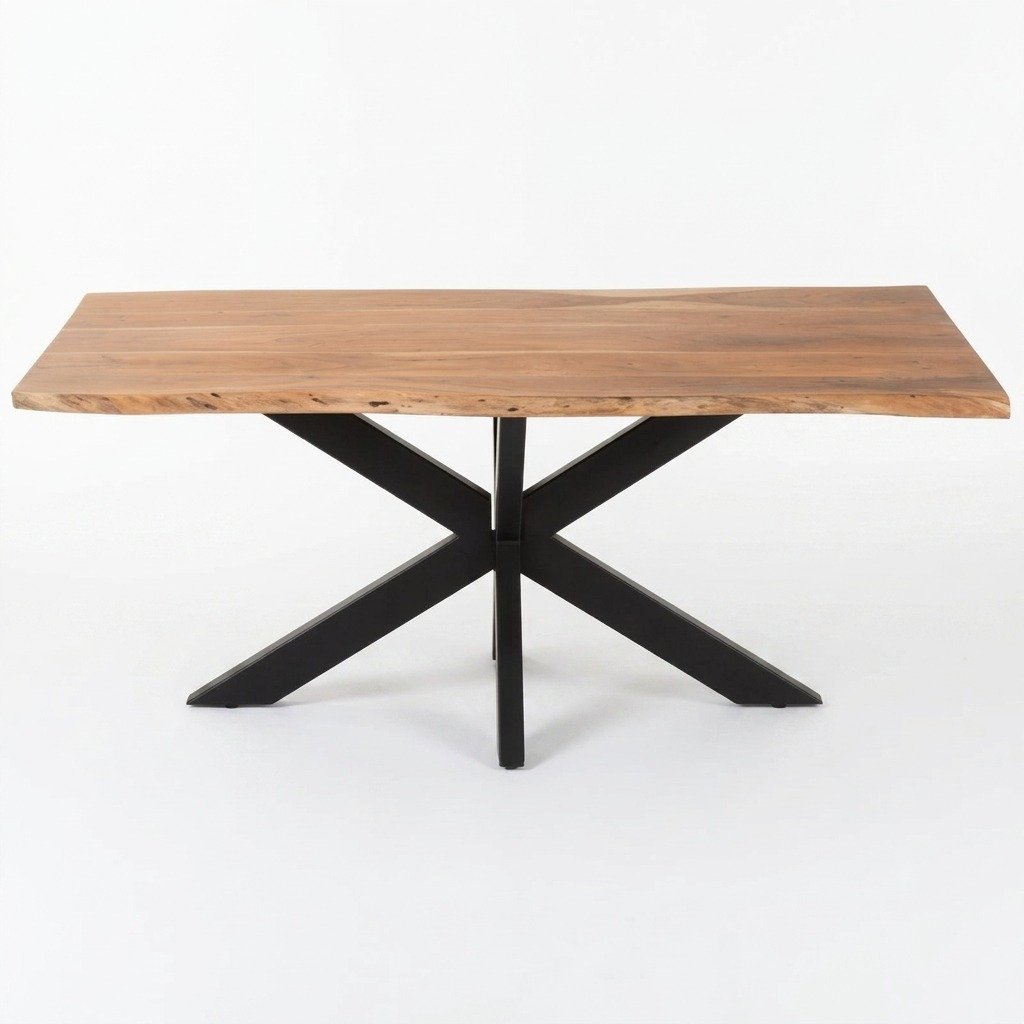 Solid Wood Dining Table 180×90 cm with Star-Shaped Base – PRITI