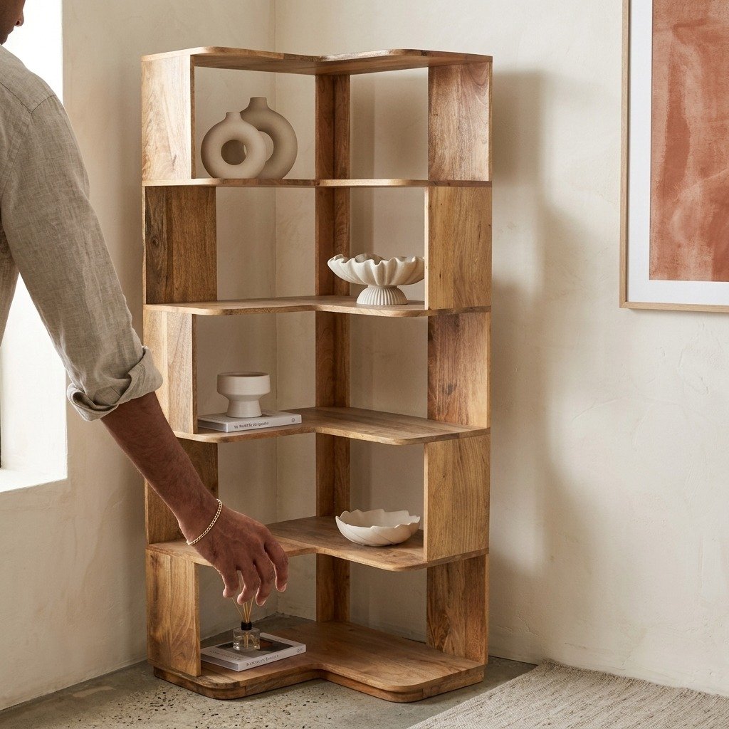 Elevate your interiors with this uniquely designed sculptural shelf, handcrafted from solid mango wood. Durable, stylish, and versatile, it blends natural beauty with modern artistry, making it the perfect statement piece for any home.