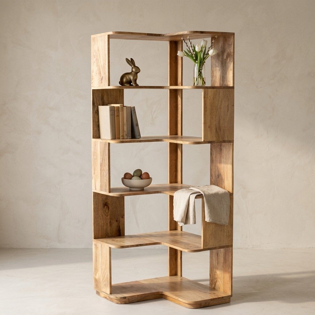Sculptural Silhouette: Uniquely curved, tiered shelves form a flowing modern design that doubles as a functional work of art.