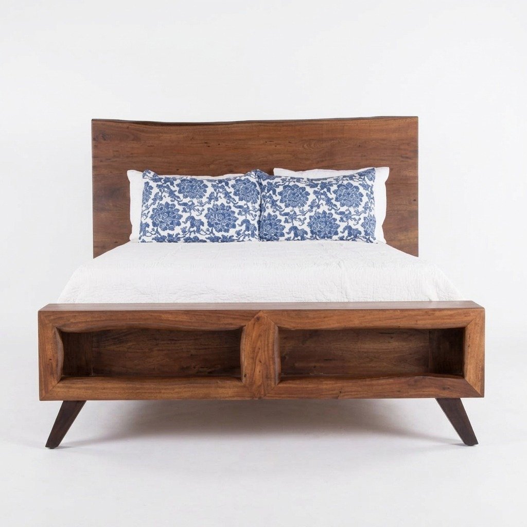 • Footboard and Side Rails: The low-profile design extends to the footboard and side rails, which are crafted from the same solid wood as the rest of the bed. The footboard is typically understated, allowing the storage drawers to be the main feature, while the side rails are designed to blend seamlessly with the bed’s overall aesthetic.