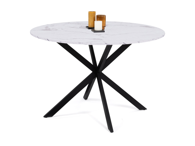 Son pied central araignée en métal noir apporte une note industrielle moderne tout en garantissant une excellente stabilité. Cette structure centrale libère l’espace autour de la table et facilite l’installation des chaises, offrant un confort optimal à vos invités. Grâce à son diamètre de 110 cm, la table ALASKA peut accueillir jusqu’à 6 convives, idéale pour les repas en famille, les dîners entre amis ou les moments de convivialité au quotidien.