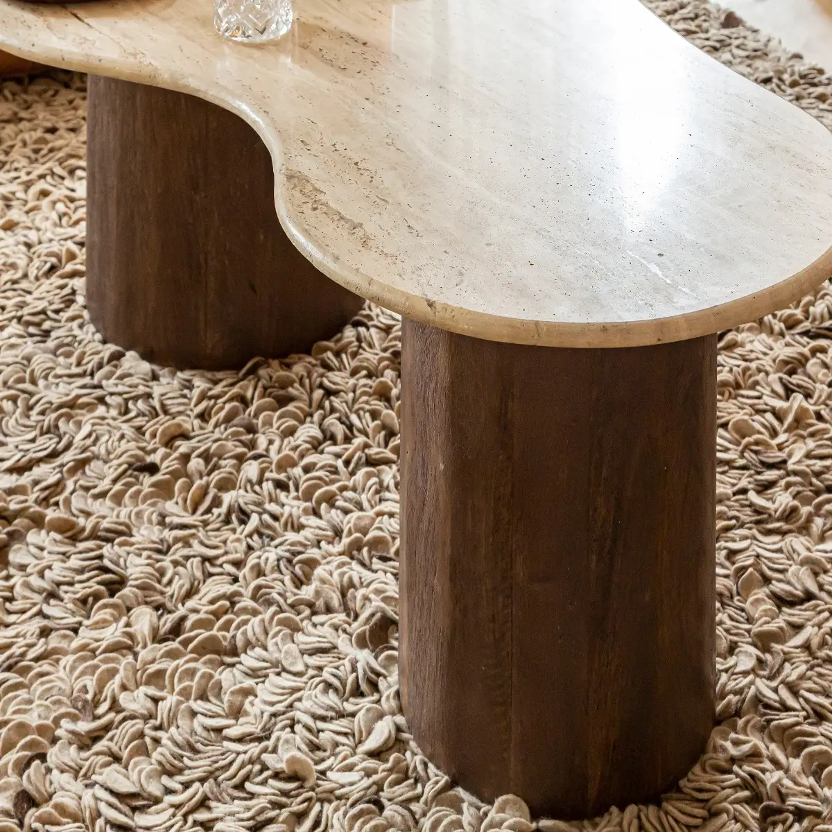 Reposant sur des pieds en bois de manguier soigneusement travaillés, la table basse Carola offre un contraste harmonieux entre la minéralité du travertin et la chaleur du bois. Cette combinaison raffinée crée une atmosphère à la fois moderne, naturelle et intemporelle, idéale pour un salon contemporain, chic ou même bohème. Sa hauteur de 40 cm est parfaitement pensée pour un usage quotidien, permettant d’accueillir livres, magazines, objets décoratifs ou plateaux lors de moments de convivialité.