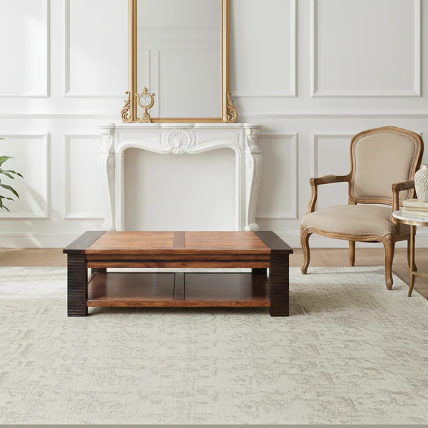 Fabriquée en Inde par des artisans au savoir-faire traditionnel, cette table basse carrée en acacia massif témoigne d’une qualité de fabrication remarquable. Son assemblage artisanal est sublimé par de délicats motifs ciselés, qui soulignent le caractère authentique et raffiné de la pièce. Le mariage harmonieux des teintes miel et wengé apporte un aspect chamarré unique, renforcé par une finition soignée qui protège le bois tout en facilitant l’entretien au quotidien.