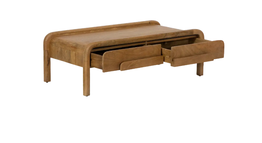 Pratique autant qu’esthétique, la table Féodor est équipée d’un tiroir discret en façade, parfait pour ranger télécommandes, livres ou objets du quotidien. Cet espace de rangement astucieux préserve la pureté des lignes et la simplicité du design, tout en assurant un confort d’usage au quotidien. Table basse en bois de manguier Féodor