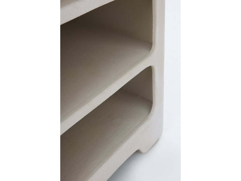 Fabriquée en polyrésine de haute qualité, cette table de chevet design se distingue par sa structure monolithique solide et durable. Ce matériau robuste garantit une excellente stabilité et une longue durée de vie, même en usage quotidien. Grâce à sa conception en un seul bloc, cette table de nuit en polyrésine ne nécessite aucun montage, ce qui permet une installation immédiate et sans effort dans la chambre. Table de chevet sable