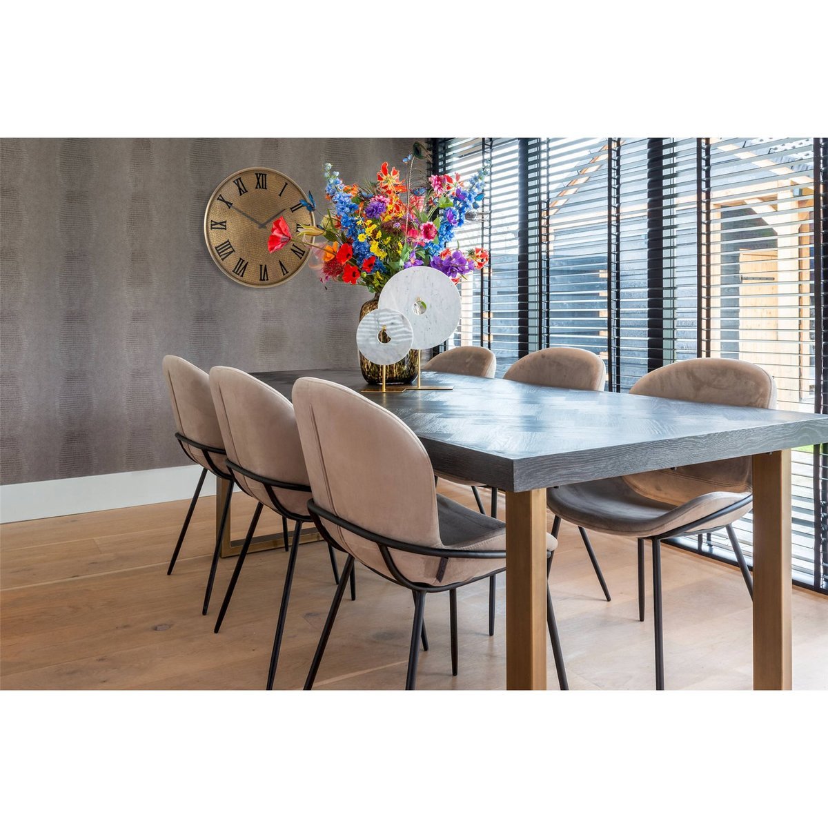 With its luxurious materials and balanced design, the PRITI black wood and brass dining table invites you and your guests to linger and enjoy. More than just a table, it’s a centerpiece that reflects refined taste, adding elegance and functionality to your dining experience. Whether hosting a casual brunch or a formal dinner, this table creates a warm and welcoming atmosphere that enhances every shared moment.