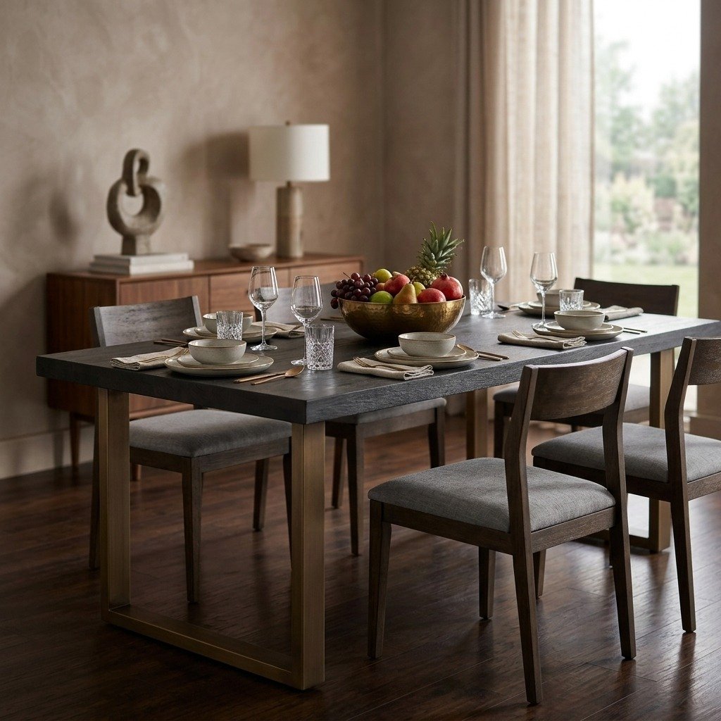 PRITI Dining Table with Black Brass Accents