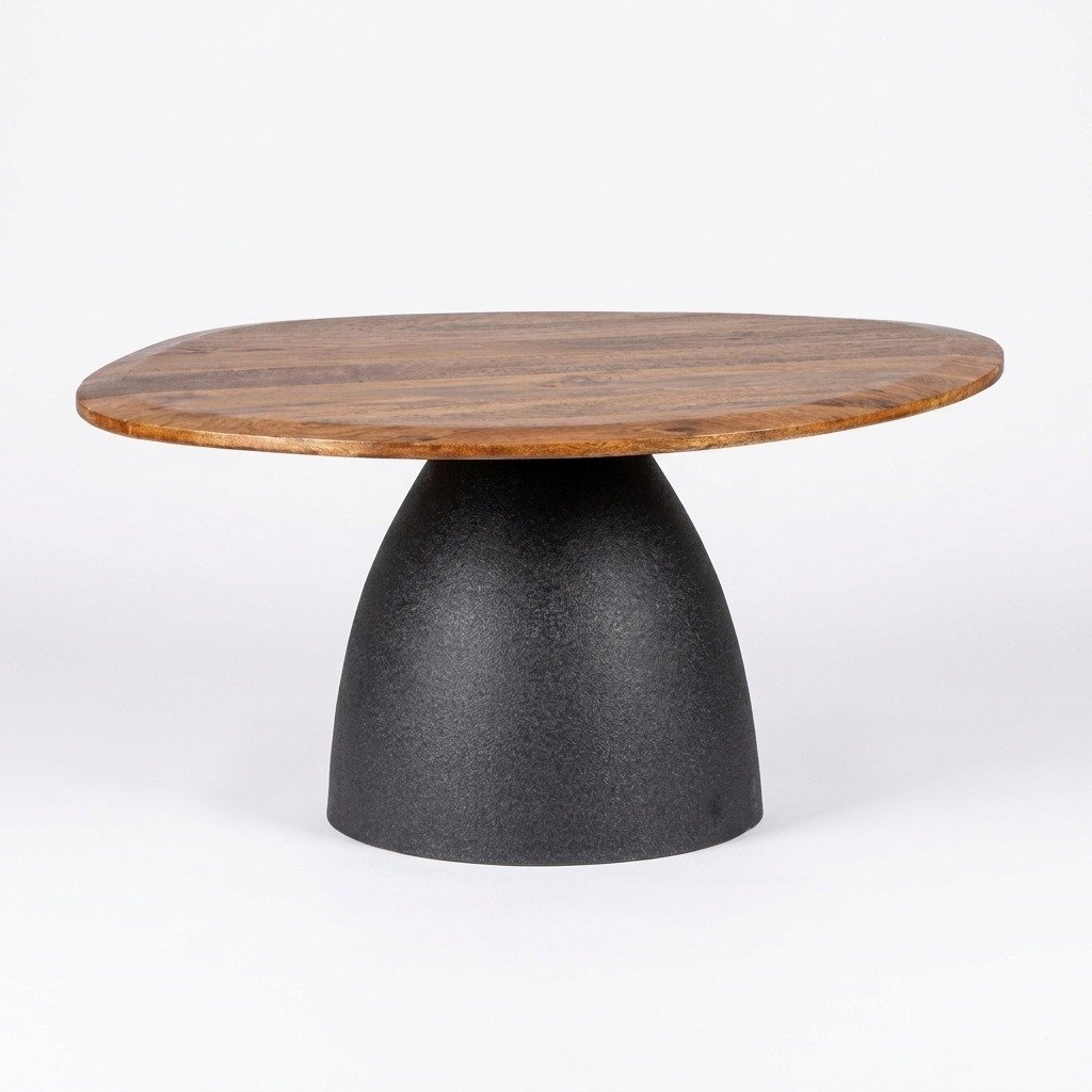 tablero de madera de mango, mesa de madera con base metĂ¡lica, mesa irregular de madera, mueble industrial de diseño, base de acero barnizado, tablero artesanal de madera.