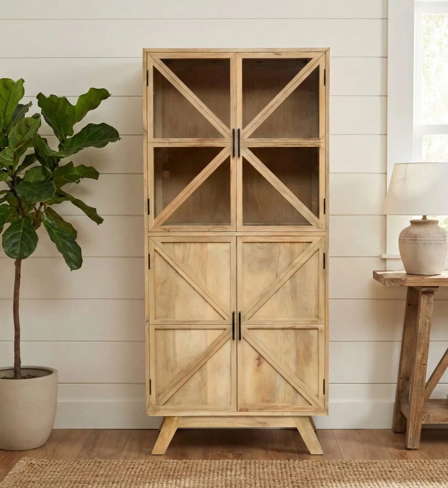 With premium solid wood construction, tempered glass protection, and modern detailing, this cabinet is a must-have for anyone looking to elevate their interiors with a stylish and functional storage solution.