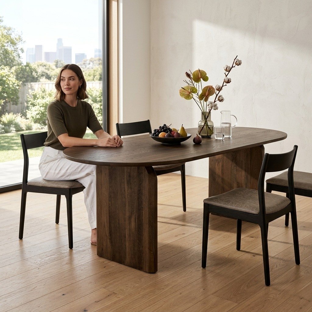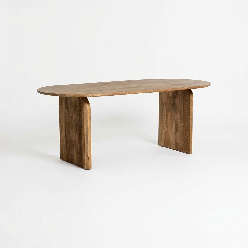 PRITI Natural Wooden 200cm Curved Dining Table, Seats 4-6 (Solid Wood)