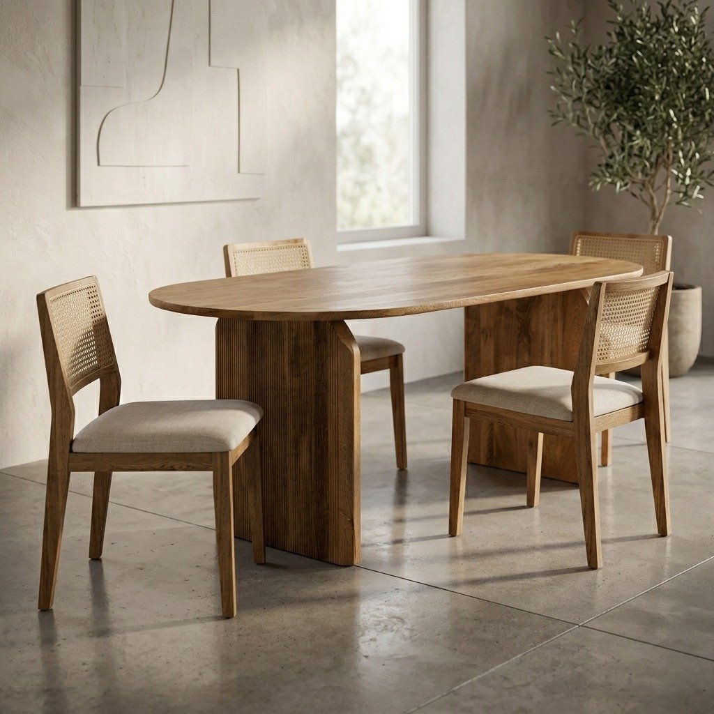 Materials and Finish: Crafted from premium natural wood, the PRITI Dining Table is built for durability and lasting beauty. The wood is carefully selected for its strength and natural grain patterns, ensuring that each table is unique. The finish highlights the wood’s rich texture and color, with options that range from light, natural tones to deeper, warmer stains. This allows you to choose a finish that best suits your decor and enhances the table’s overall appearance. The natural wood finish is also designed to be easy to maintain, ensuring that the table remains a beautiful centerpiece for years to come.