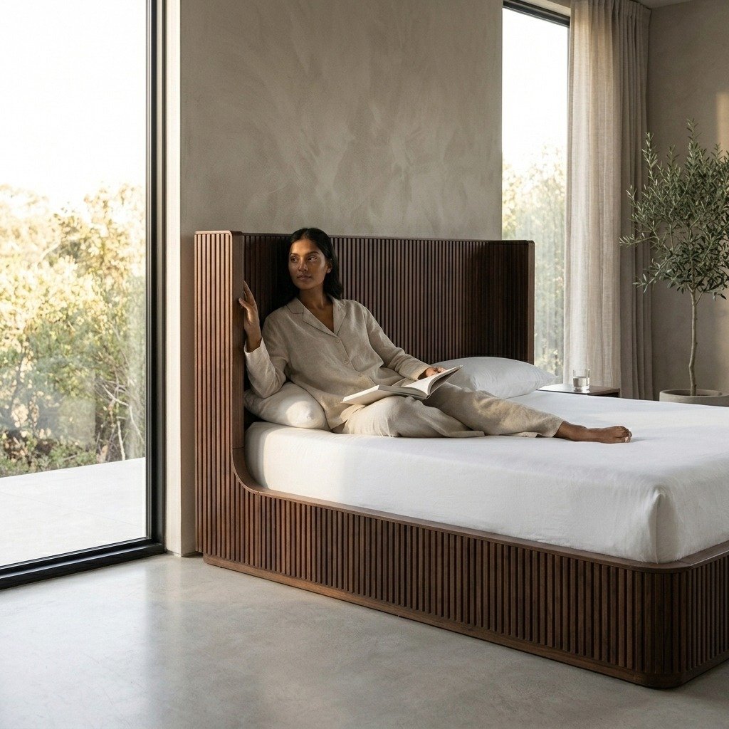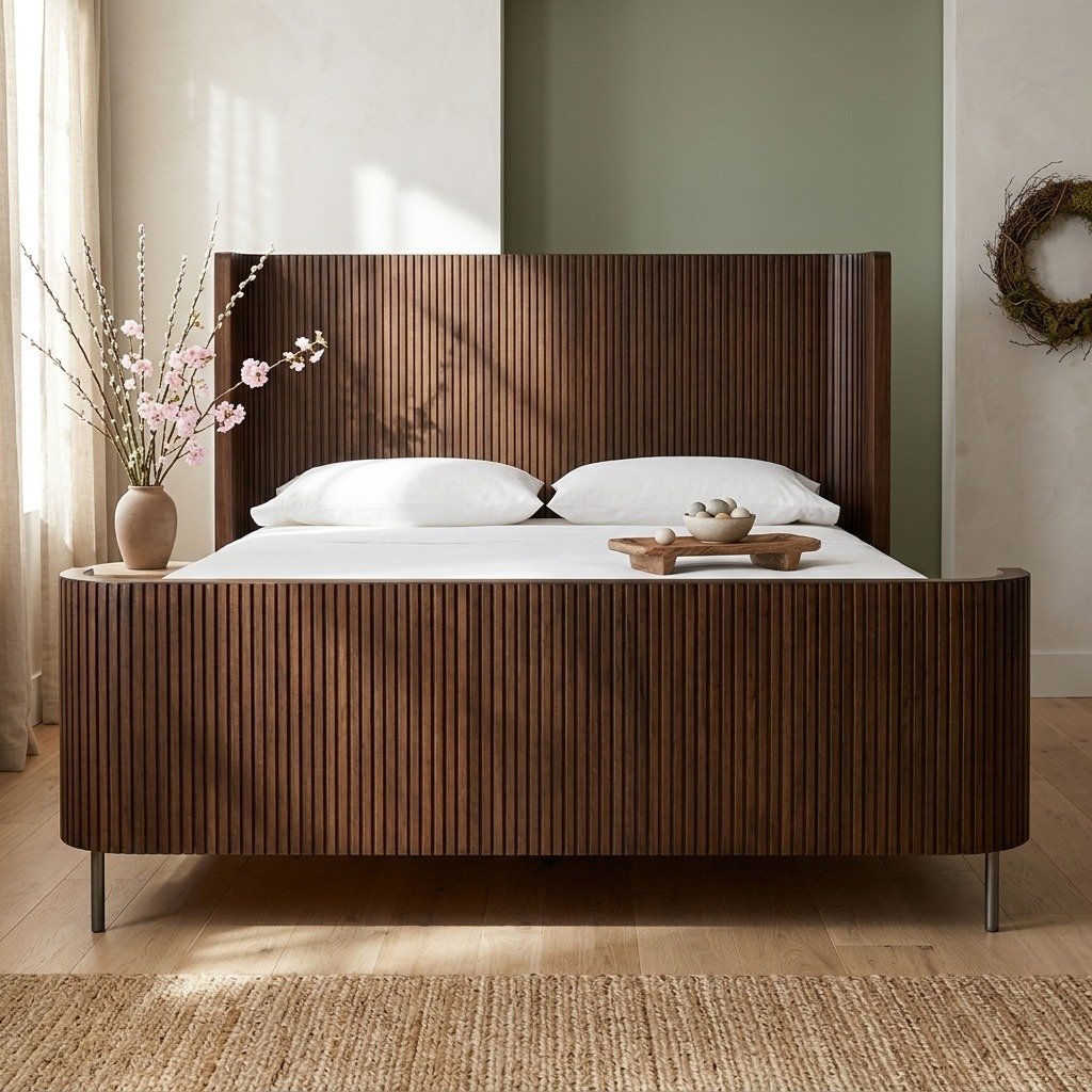 PRITI Wood Brushed Iron Platform Bed – Queen