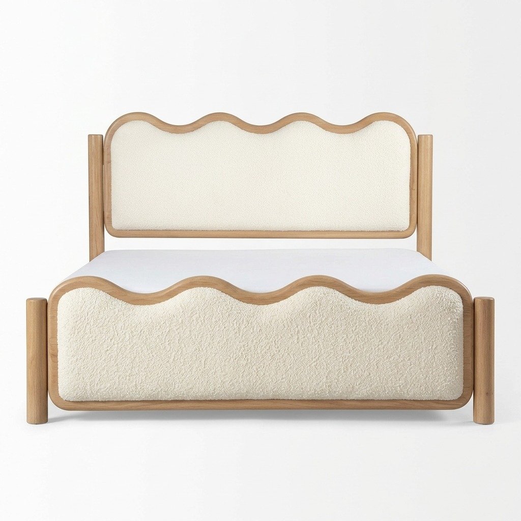 Wood Frame Cream Boucle Upholstered Wavy Bed – Queen – PRITI
