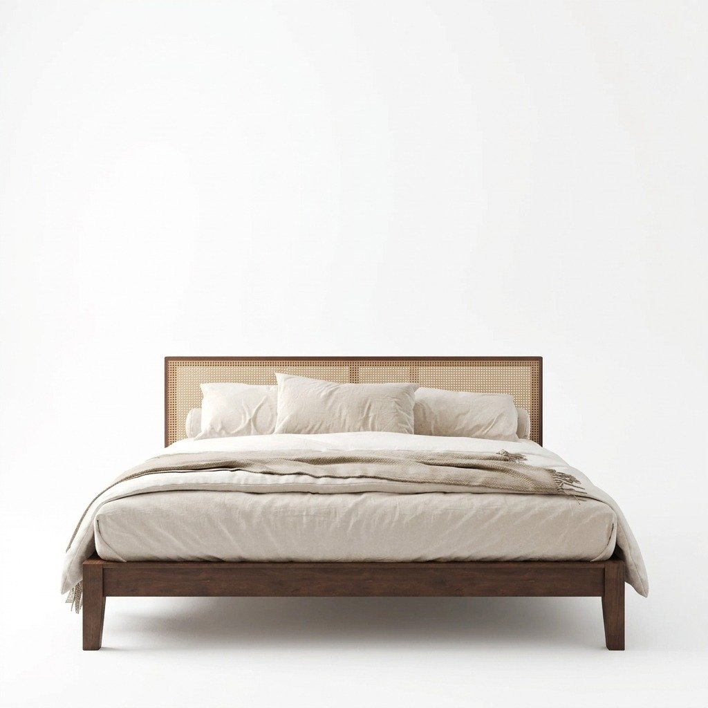 Whether you’re furnishing a cozy apartment or a spacious master suite, this bed brings natural elegance, minimalist design, and exceptional craftsmanship to your home. Create a peaceful, curated bedroom sanctuary with a piece that embodies both modern style and artisanal heritage. Wood & Rattan Bed frame