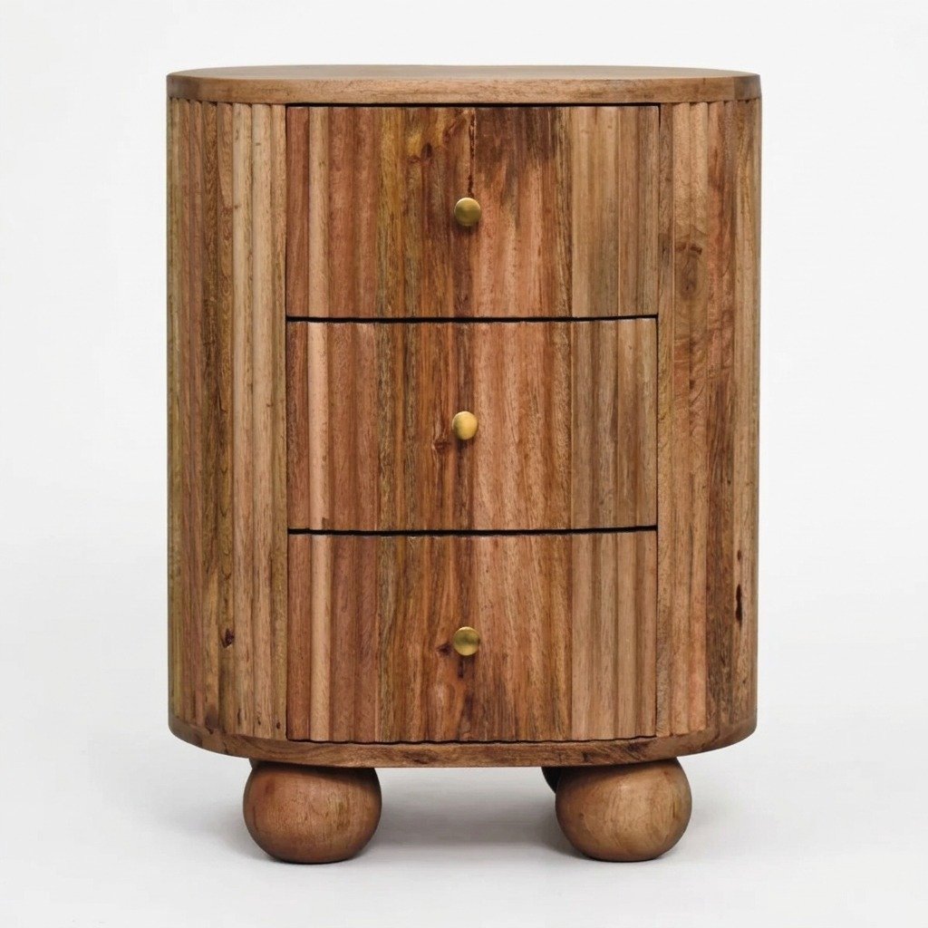 PRITI Wooden Ball 3 Drawer Bedside Table (Solid Wood )