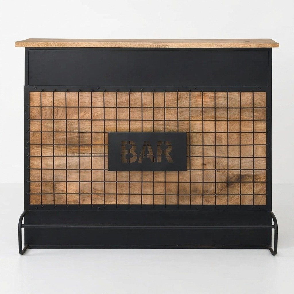 Fitted with a 3-drawer storage unit to keep bar tools, napkins, and accessories neatly organized.