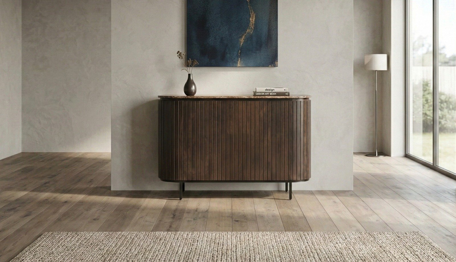 One of the standout features of this sideboard is its luxurious marble top, which lends a sense of opulence and sophistication to the piece. The smooth, polished surface contrasts beautifully with the warm wood below, offering a visually striking yet harmonious combination. The marble not only adds a refined aesthetic but also enhances the sideboard’s durability, making it as practical as it is stylish.