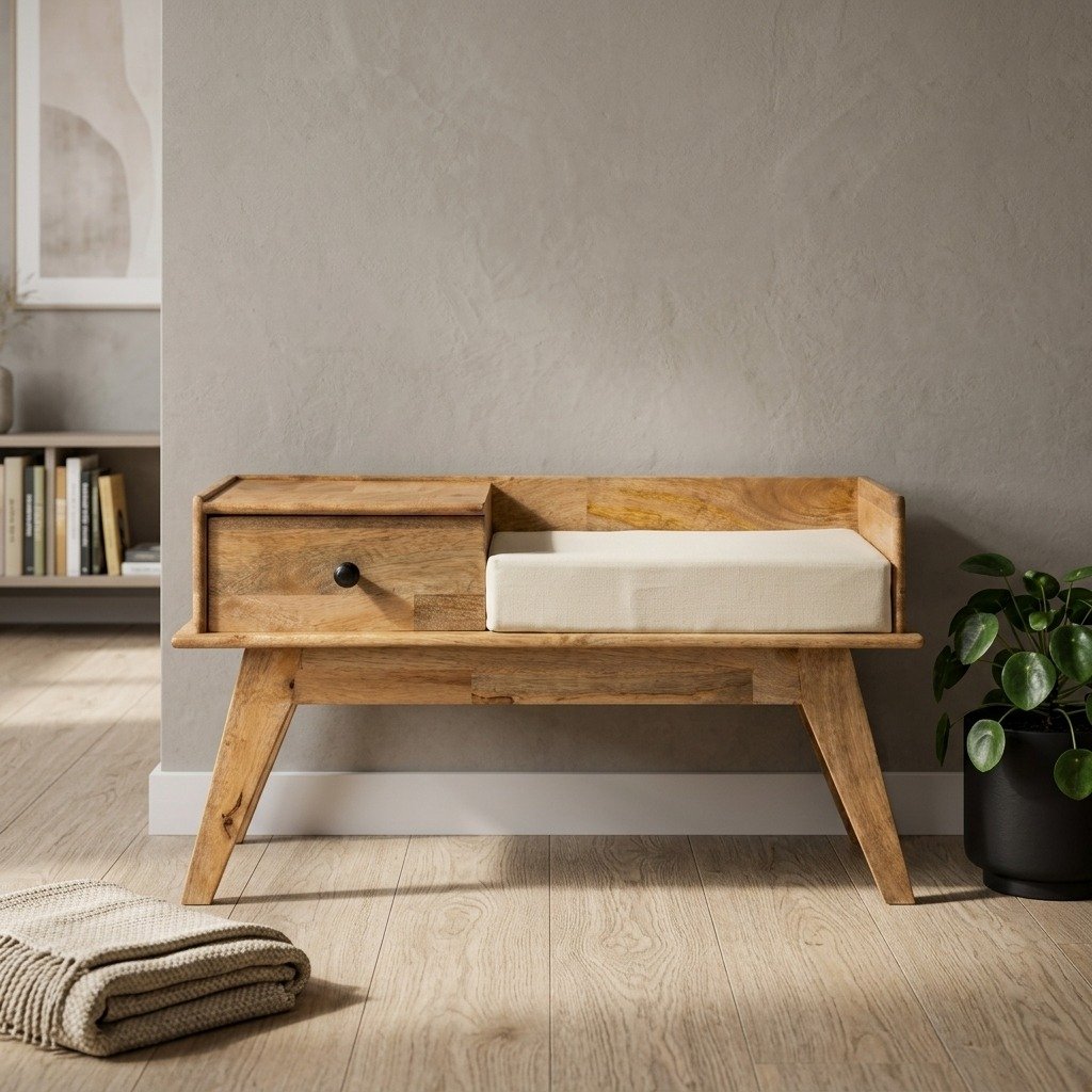 Whether used as a hallway bench, a phone seat, or a stylish side table, this wooden telephone bench with cushion and storage adds warmth, sophistication, and utility to your home décor. A perfect blend of art and function for modern living.Wooden Telephone Bench with Cushion and Storage Drawers (Solid Wood)