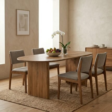PRITI Natural Wooden 200cm Curved Dining Table, Seats 4-6 (Solid Wood)