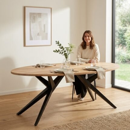 PRITI Oval Wood Dining Table 160×90 cm (Solid Wood )