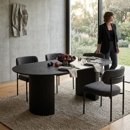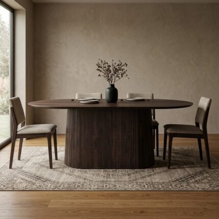 PRITI Oval Dining Table (Dark Brown Solid Wood )