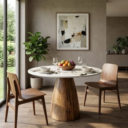 PRITI Round Marble Top Solid Wood Base Dining Table